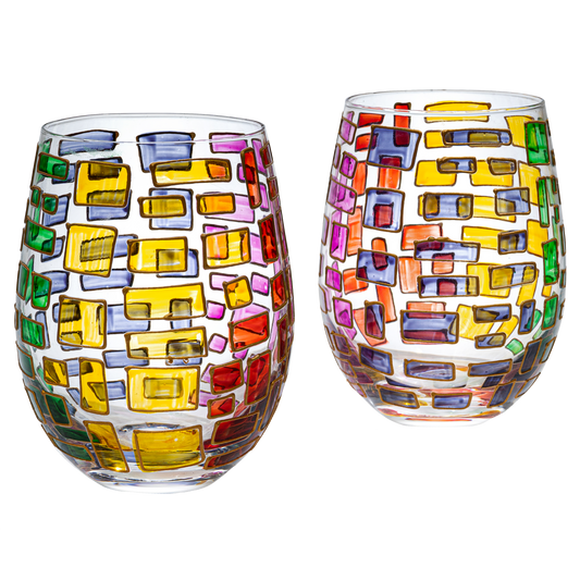 The Wine Savant Artisanal Hand Painted Stemless - Rennesance Romantic Stain-glassed Windows Wine Glasses Set of 2 - Gift Idea for Her, Him, Birthday, Housewarming - Extra Large Goblets (Martini)