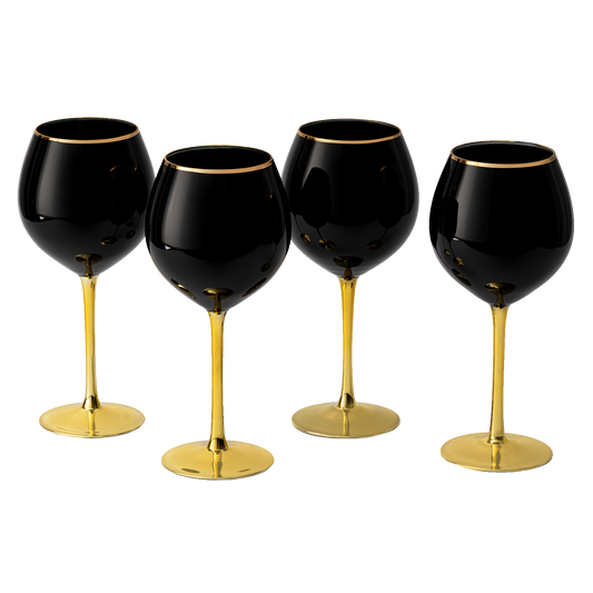 The Wine Savant Set of 4 Black Wine Glasses Gold Stemmed 14 oz Gold Rim Wine Glasses, Black Colored Wine Glasses Luxury Wine Glassware Wine Tasting, Wedding Gift, Anniversary, Birthday