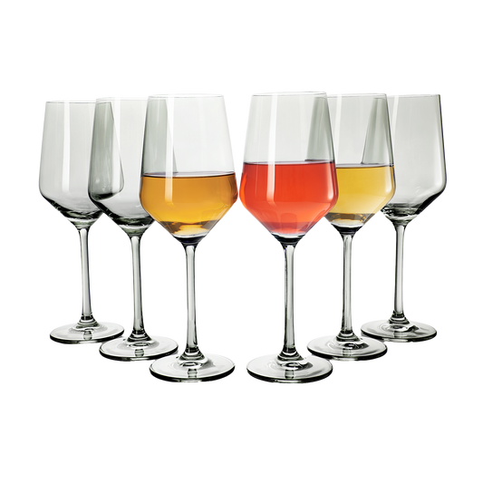 Colored Wine Glass Set, 12oz Glasses Set of 6 Baby Shower Gender Reveal Boy or Girl Decor Baby Announcement Unique Italian Style Tall Stemmed for White & Red Wine Elegant Glassware (Smoke Grey)