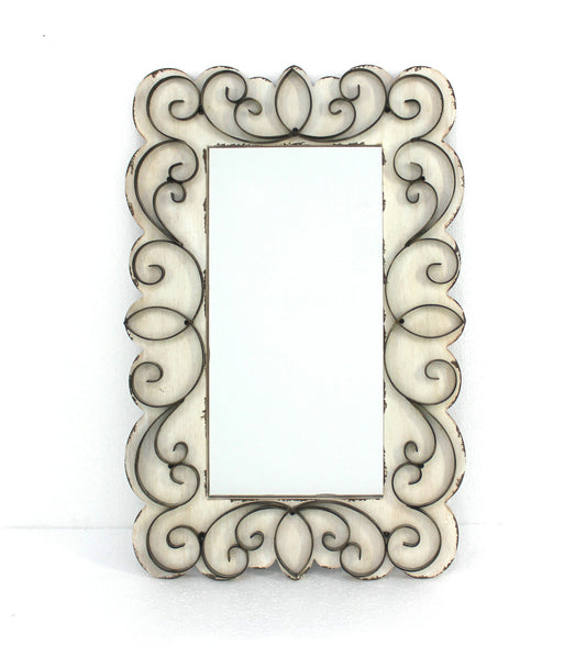 Espejo de pared decorativo vintage de madera y metal, color blanco, 32,75 x 21,75 x 1,25