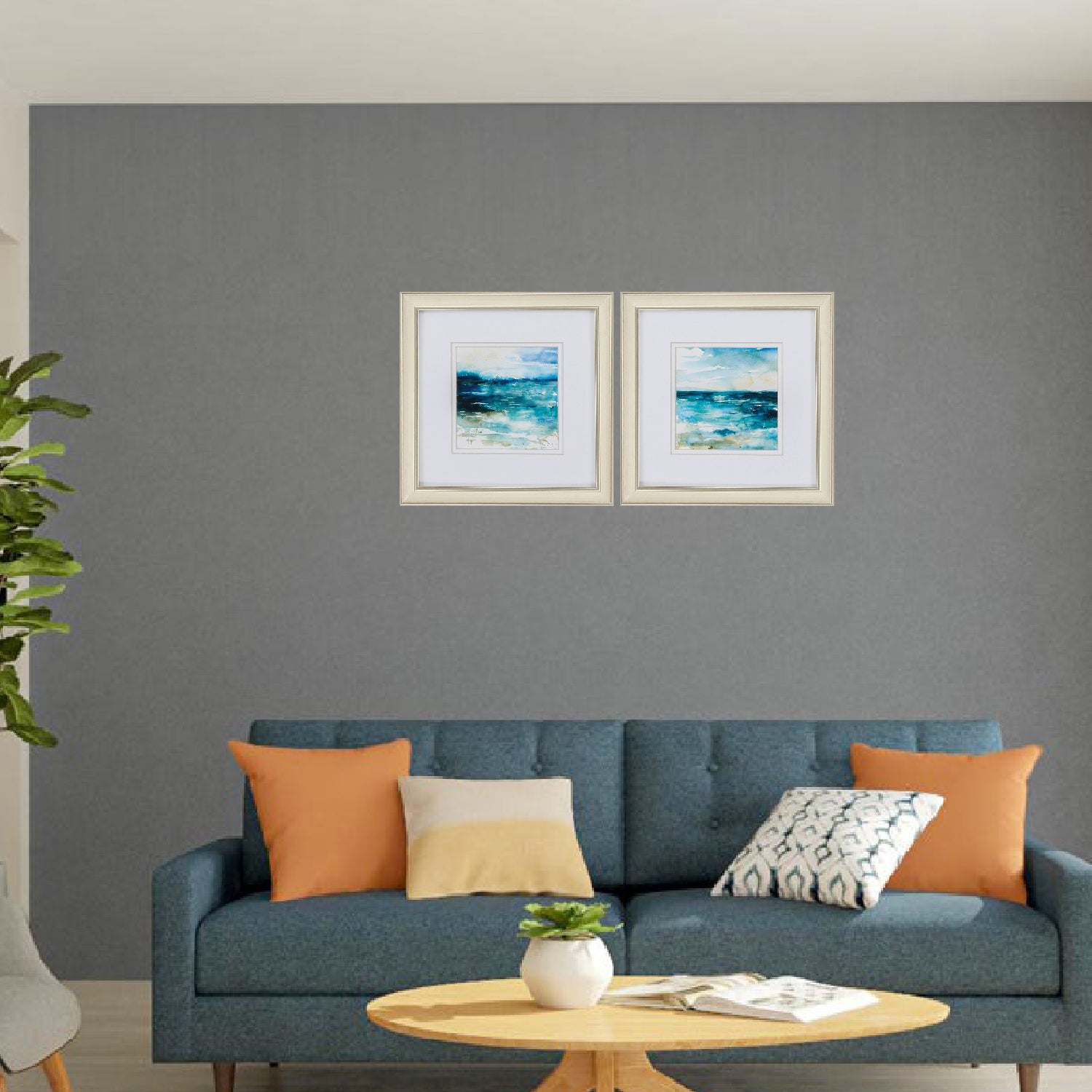 12" X 12" Champagne Gold Color Frame Ocean Break (Set Of 2)