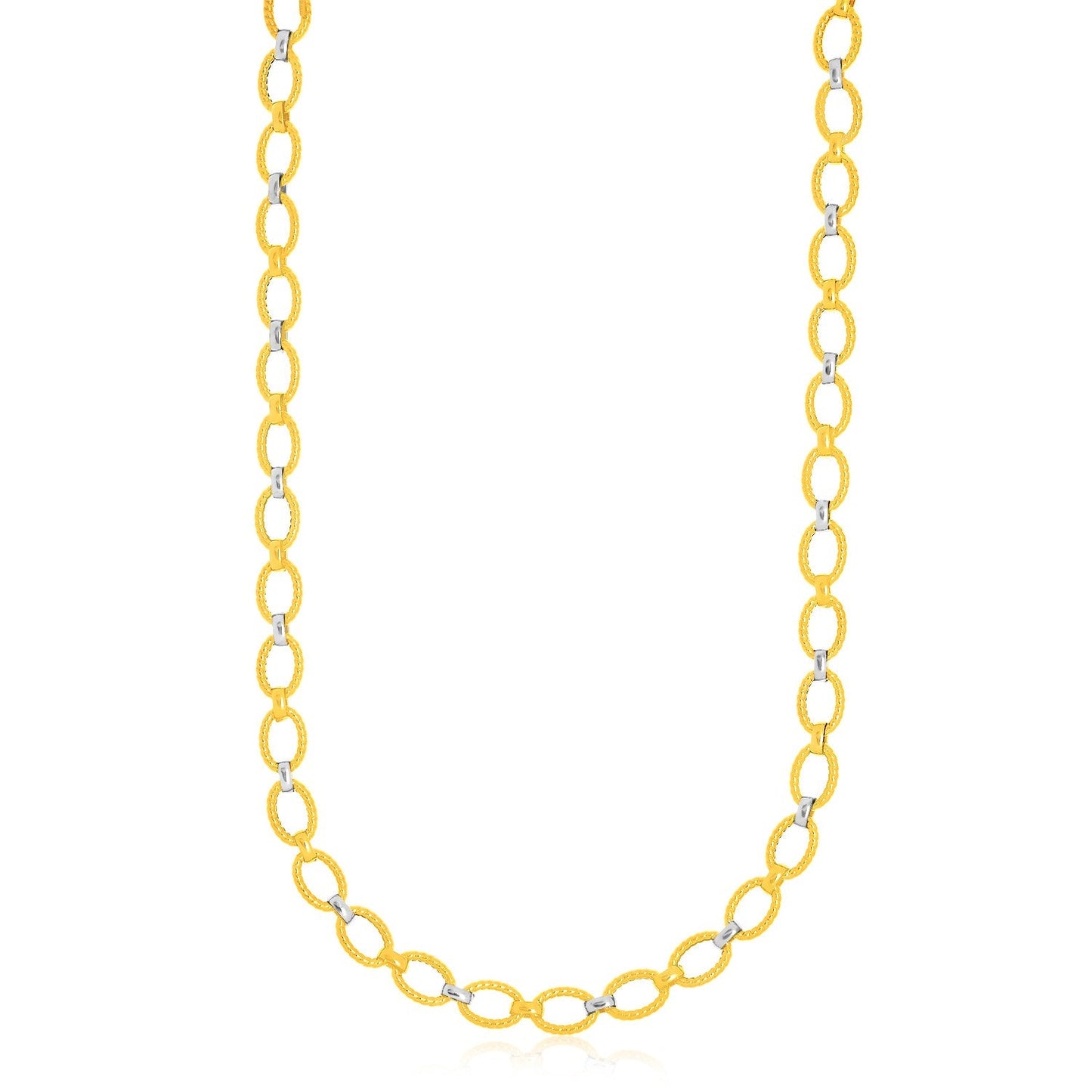 14k Two-Tone Gold Multi-Textured Oval Link Fancy Necklace