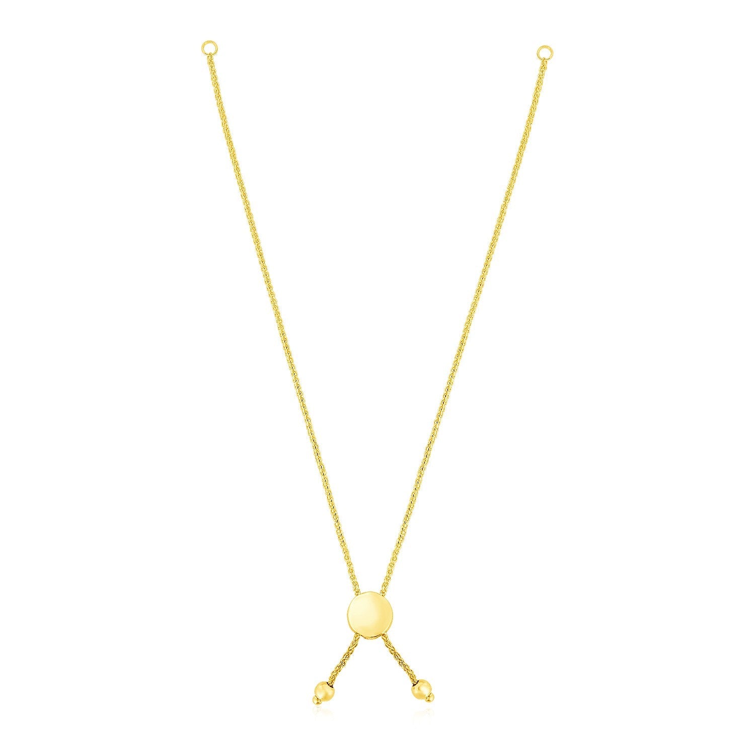 14k Yellow Gold 8 inch Adjustable Friendship Bracelet Chain with Disc Slide
