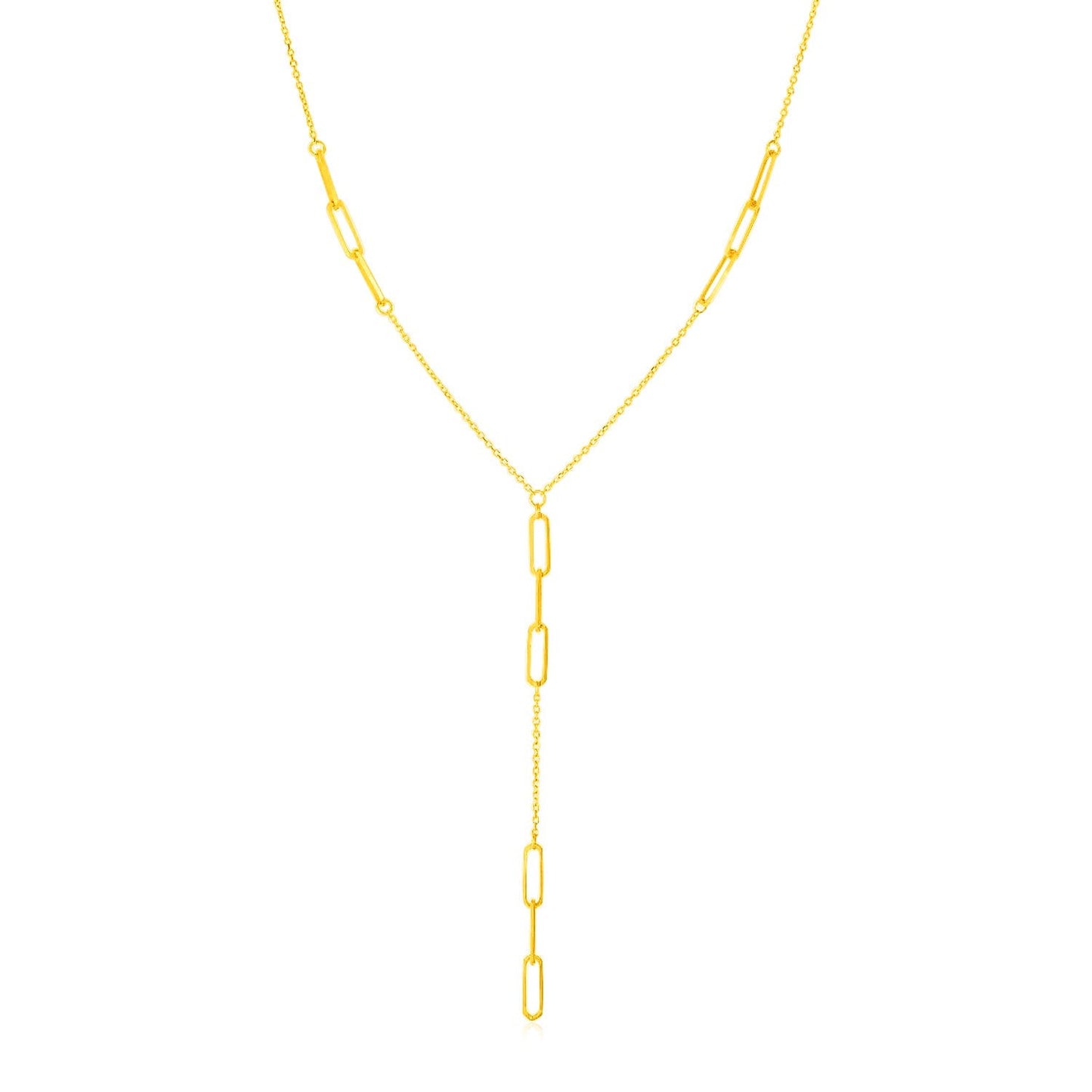 14K Yellow Gold Lariat Necklace with Paperclip Chain Stations