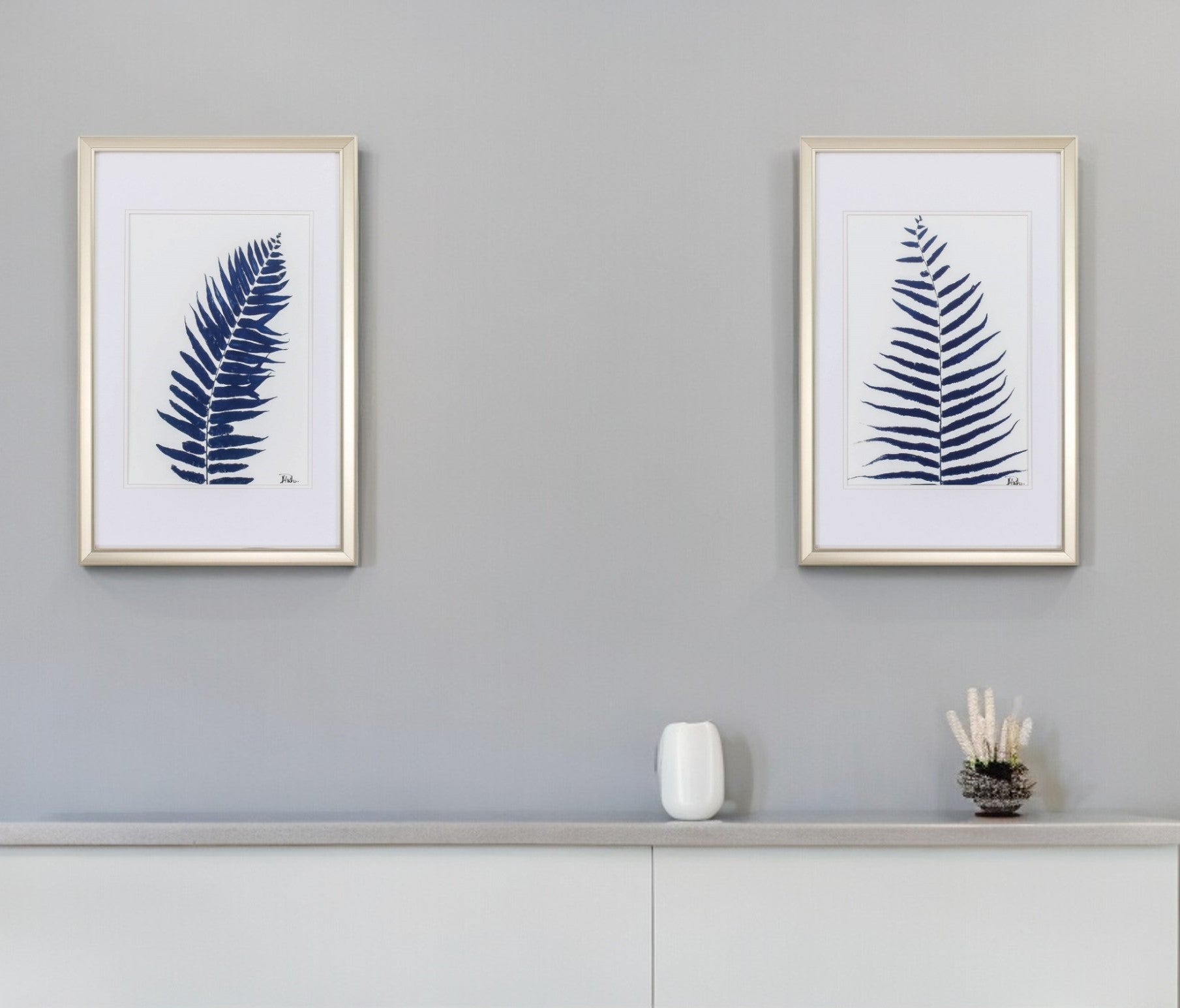 18" X 28" Champagne Gold Color Frame Indigo Ferns (Set Of 2)