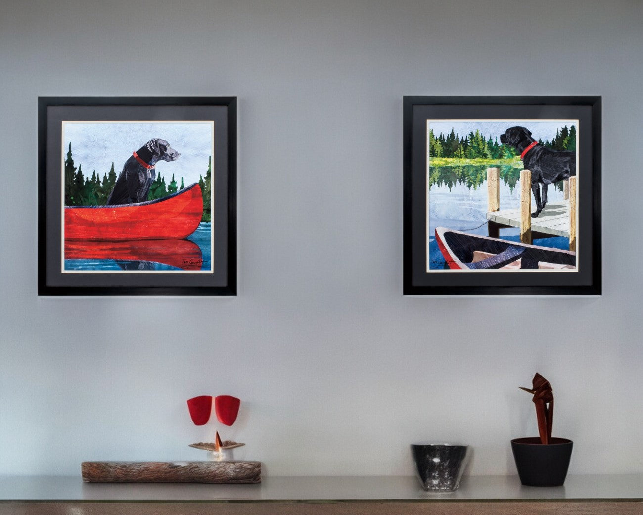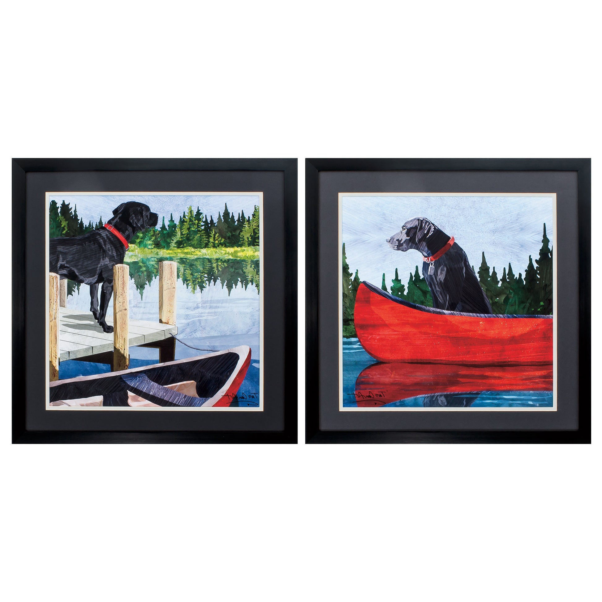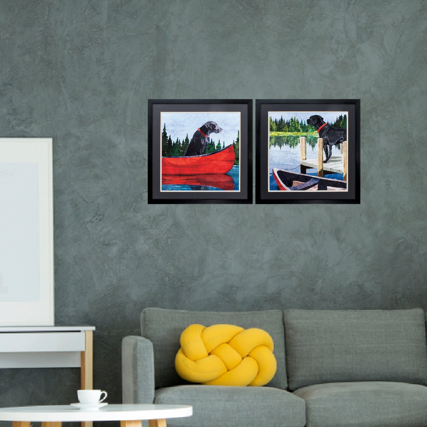 24" X 24" Dark Wood Toned Frame Dogs On Lake (Set Of 2)