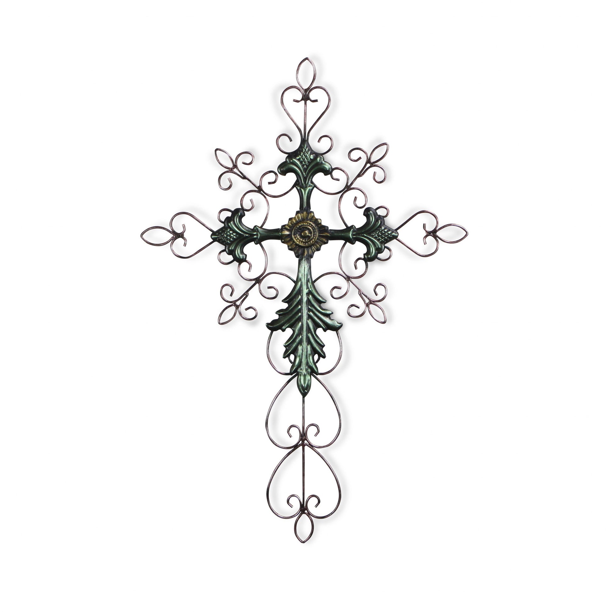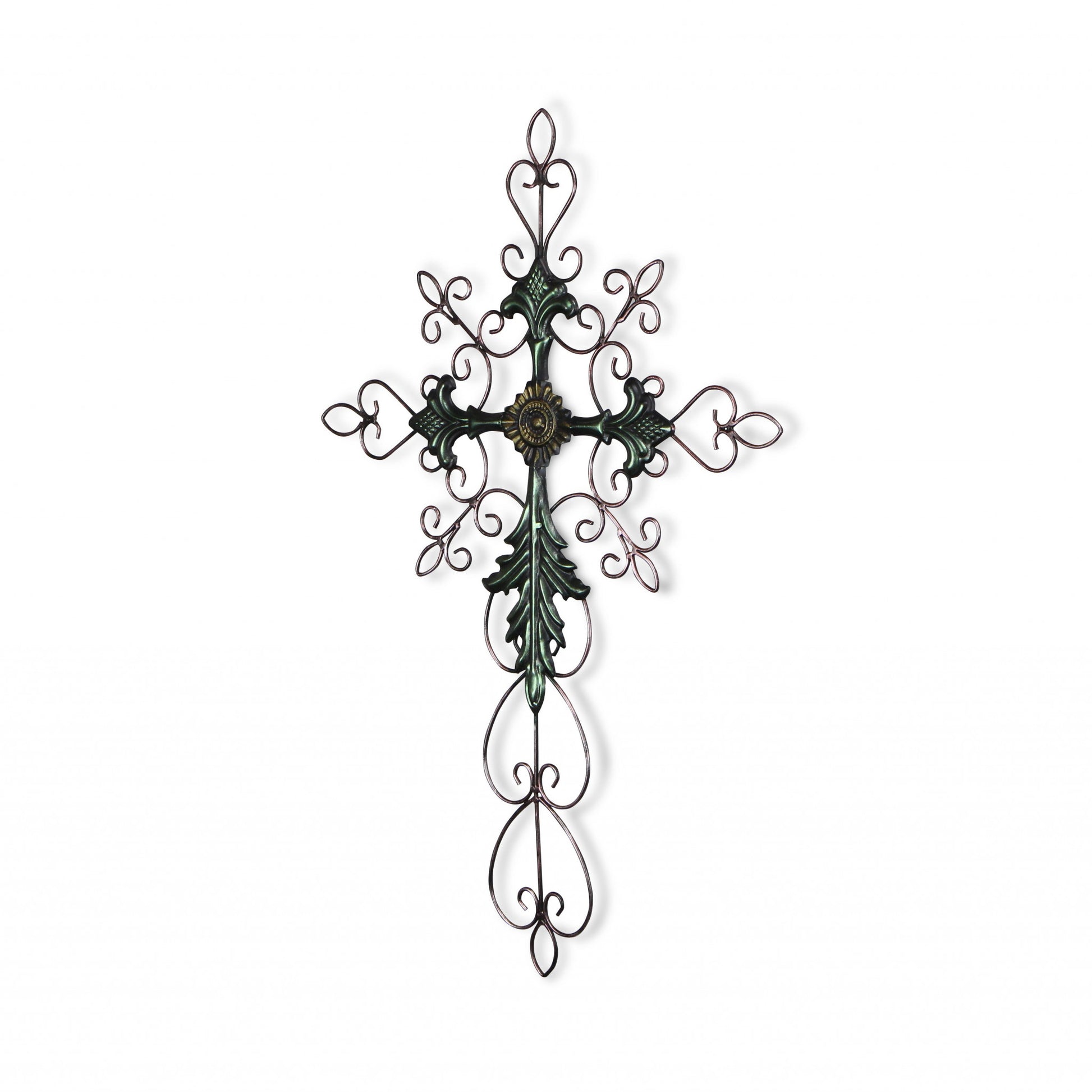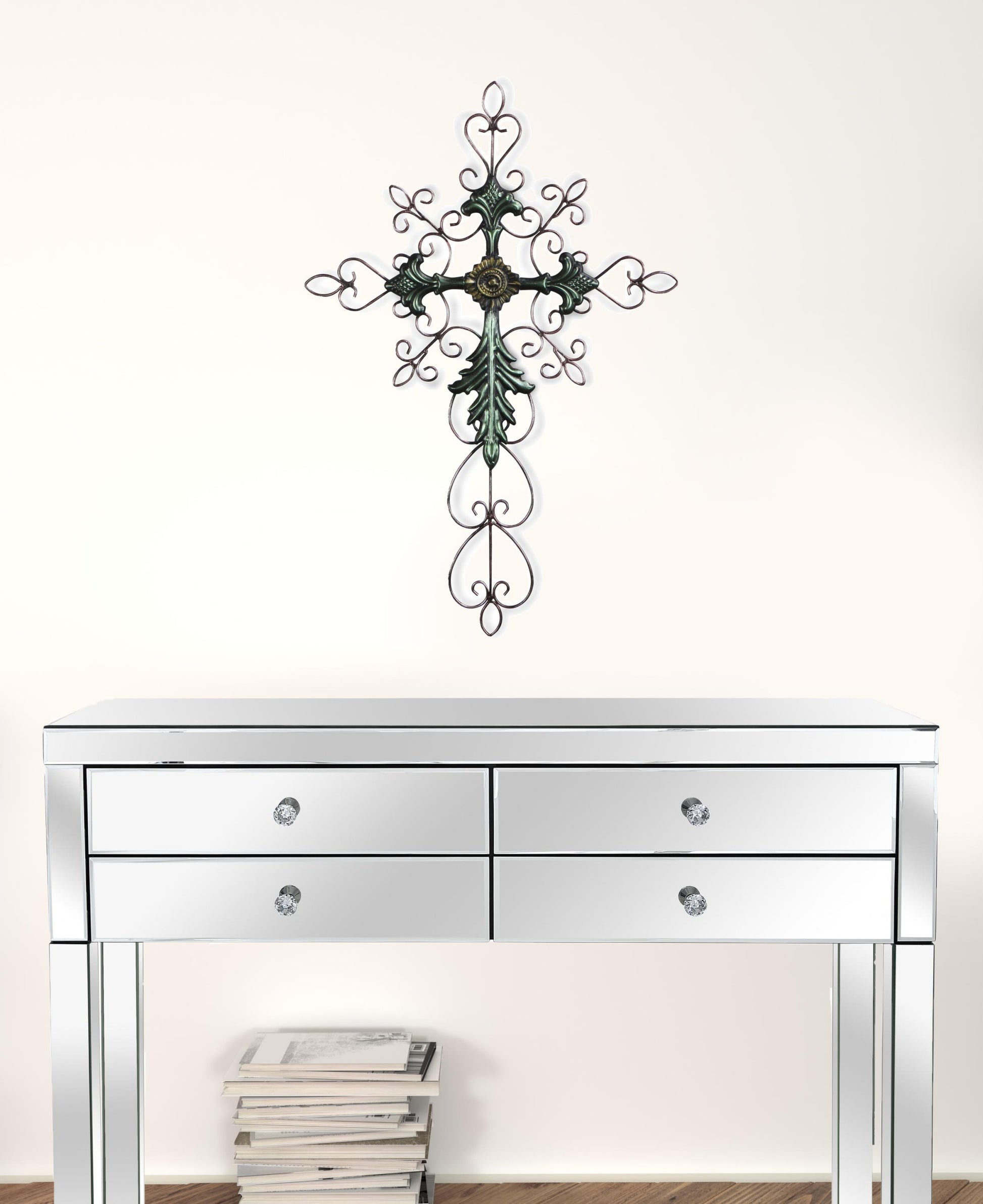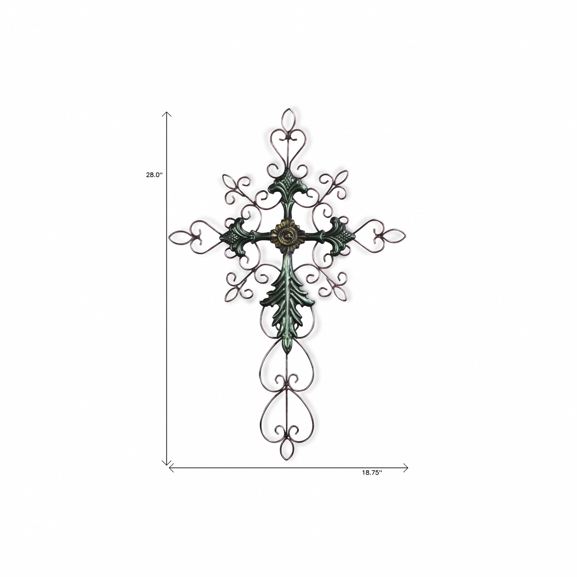 28" Green and Gold Metal Hanging Cross Wall Decor