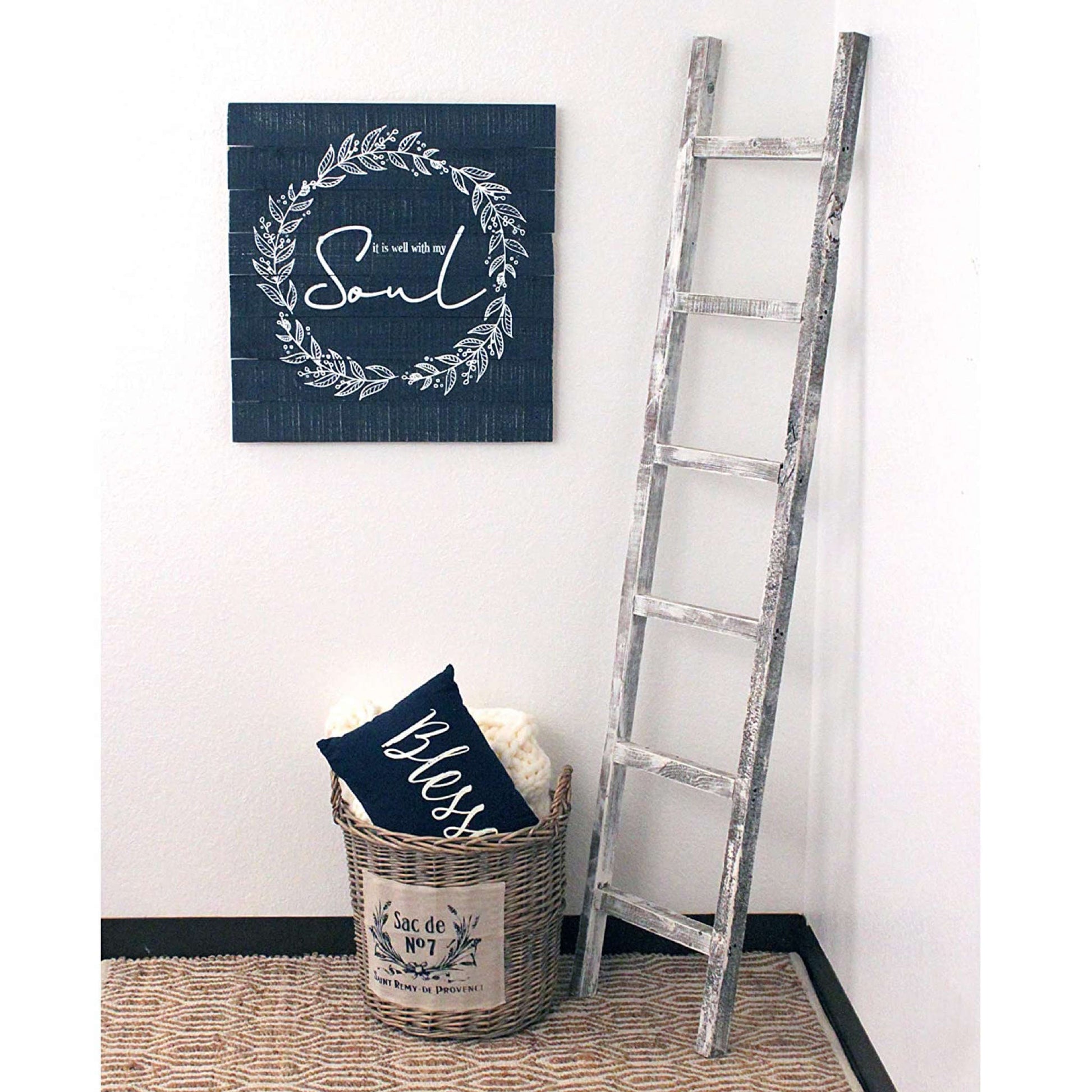 If you've been searching for that perfect piece of rustic home decor, then these wonderful ladder shelves will make a wonderful addition to your collection. Made right here in the United States, each of these beautiful pieces is crafted from reclaimed and recycled wood so you can beautify your home without harming a single tree! Since each one is hand-made, no two ladders in the world are identical. Each has its own distinct character, so you'll have a one-of-a-kind ladder shelf whether you choose white, black, brown, red, turquoise, or weathered gray. The best part is...there's no assembly required! When your ladder shelf arrives, it'll be ready to mount right out of the box. We've already put it together for you, so you'll have everything you need to set up this wonderful piece of farmhouse decor the moment you get it.