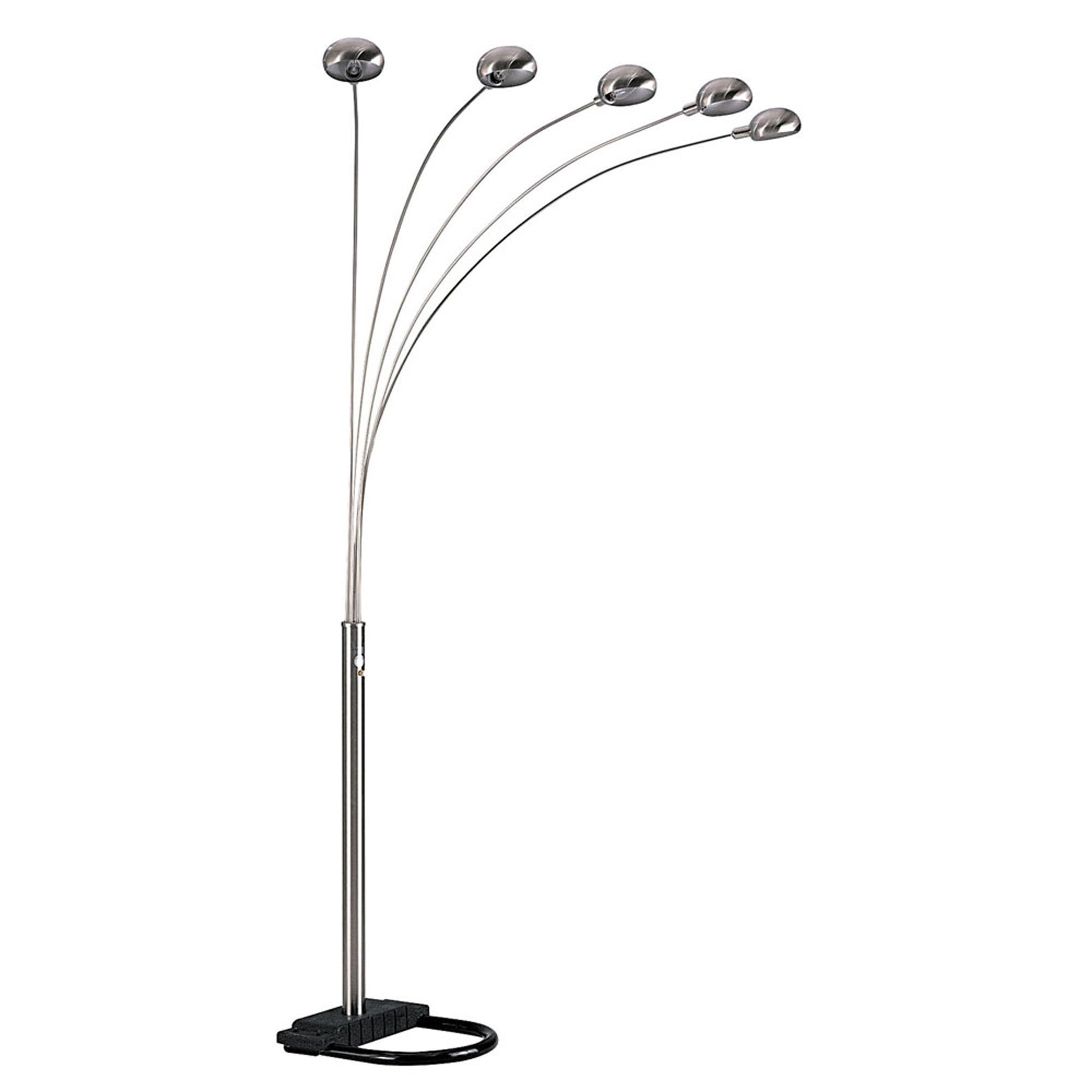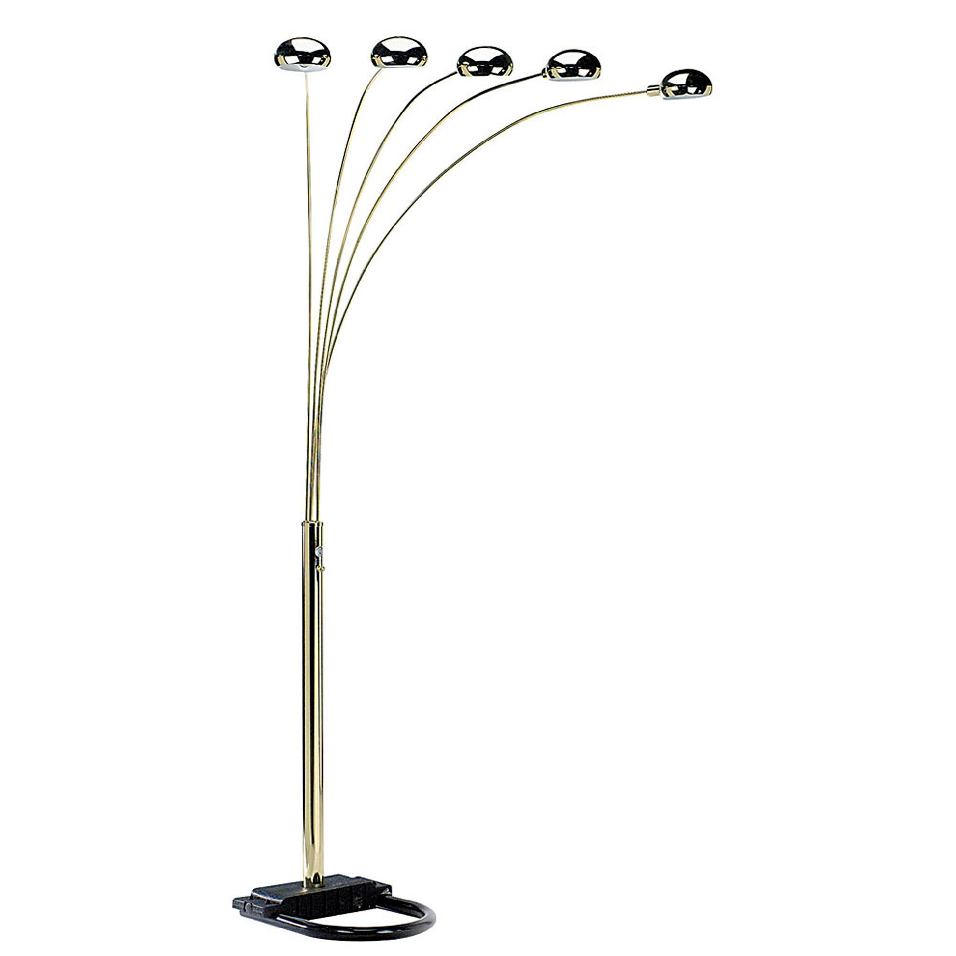 Embrace the good life with this hard working and stylish 84-inch brass five light arc floor lamp with brass metal dome shade. The lamp is made of sturdy metal and features a brass color. The brass base coloring infuses a warm and rich tone to your space. The brass of this lamp creates a nice contrast with the brass metal dome shaped shade. A great way to shed light over those hard to reach areas, this arched floor lamp has a single base with straight pole that extends upwards and a long curving arm. The light that this lamp throws is soft and warm to elevate the look of most any space in your home. The perfect lamp to create just the right natural and soothing light in your space. 84-inch H x 45-inch W x 50-inch D