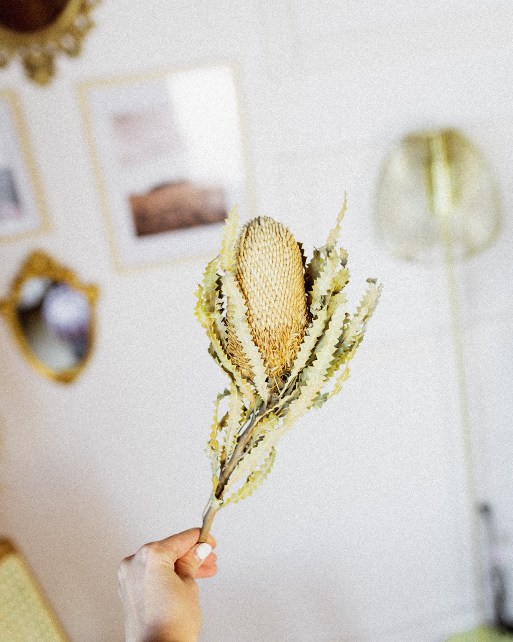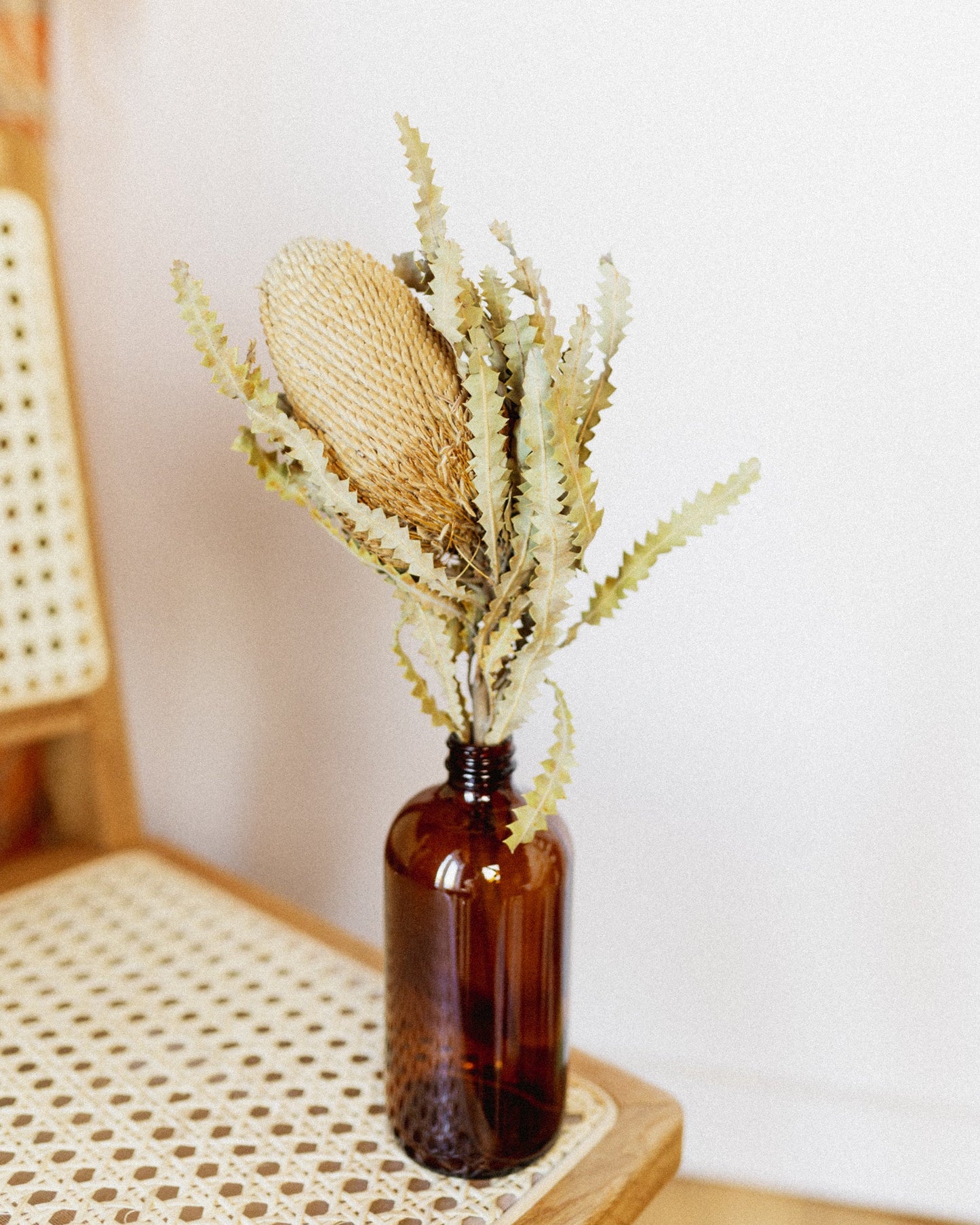 This natural woodsy shrub is known for its spikey flower head. They're great on their own or pair with your DIY projects, Their earth-tone green color gives life to any space while offering detailed textures when perfectly paired with our Apothecary vase.