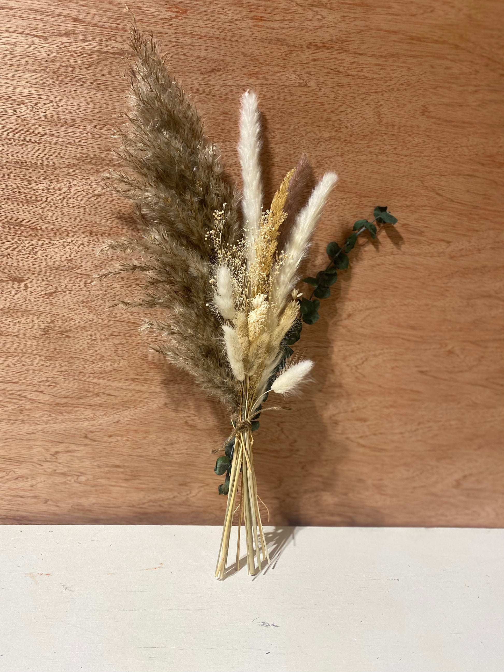 Mixed with the neutral tone of white and brown, with a touch of green eucalyptus to add a little bit of colour to this earth-tone bouquet. Pairs beautifully with the Nami Vase.