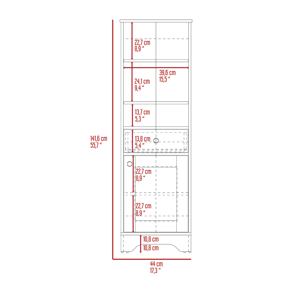 Burnedt Linen Cabinet: The Burnedt is perfect if you're looking for a cabinet with some actual personality. With its unique design, it'll be the talk of your bathroom. Plus, with ample storage space, it's ideal for all your needs, including Three shallow open shelves (8,9''H X 9,4''H X 5,3''H X 15,5''W), One drawer for more safety (5,4''H X 15,5''W), Single Door cabinet with two Interior shelves is ideal for protecting your bathroom utensils. You were designed with an elegant light grey manufactured wood finish.