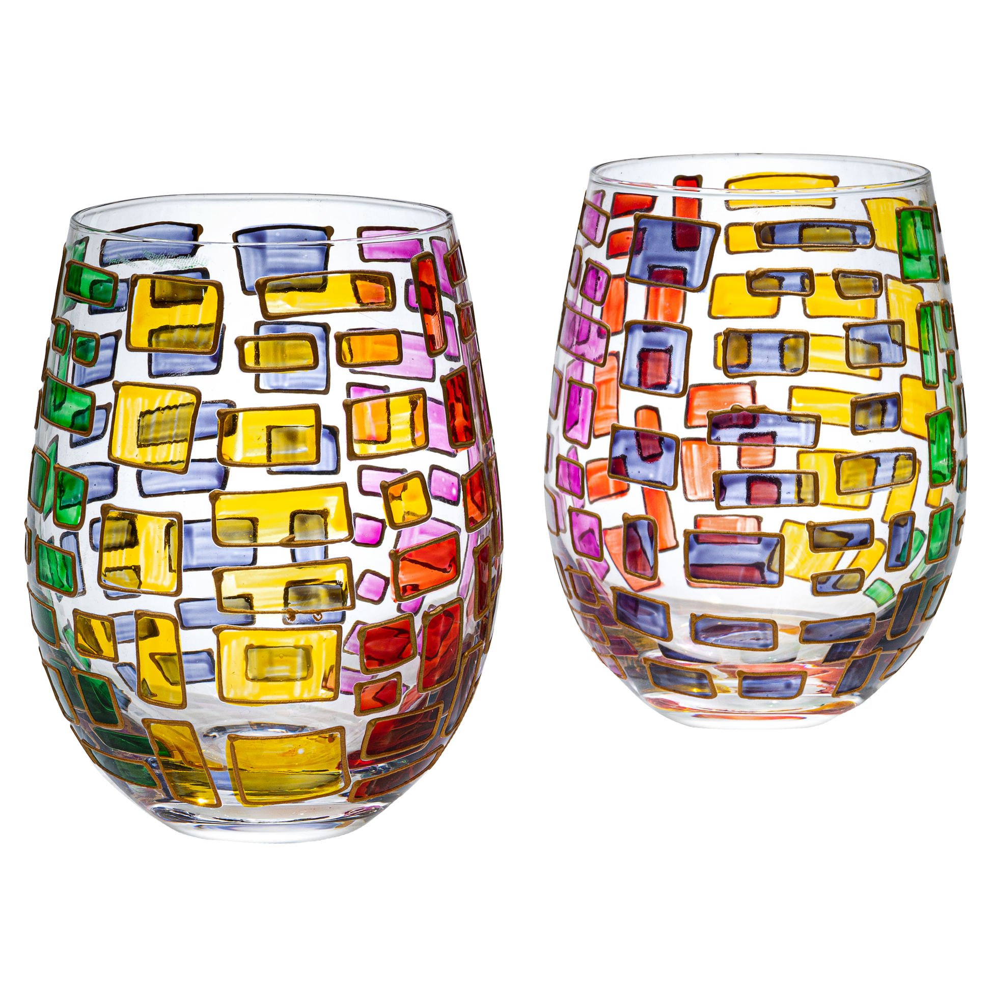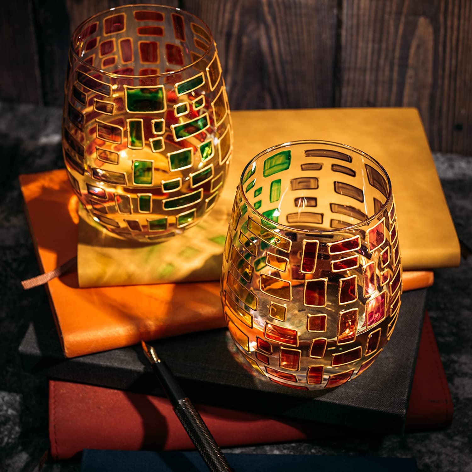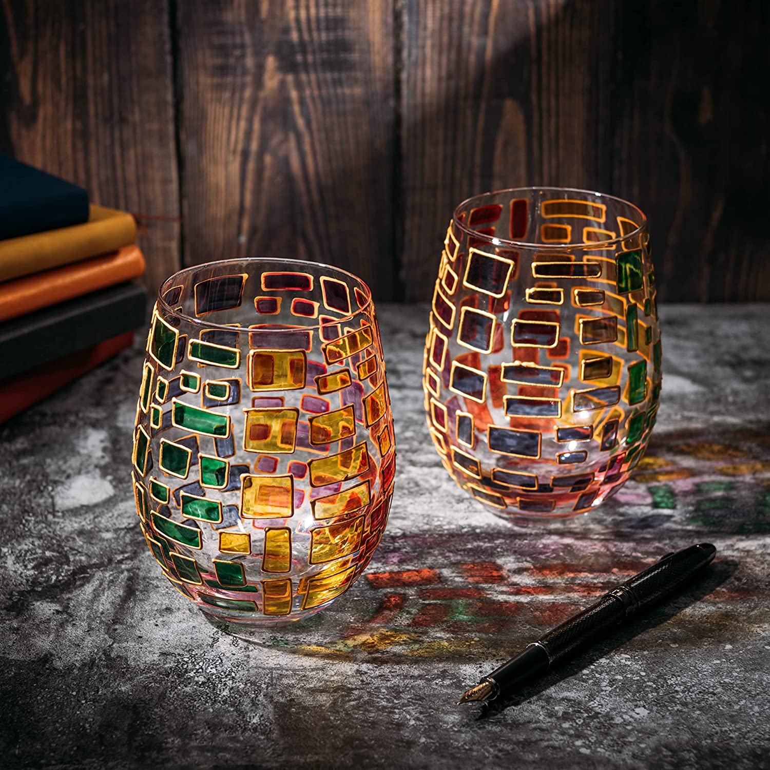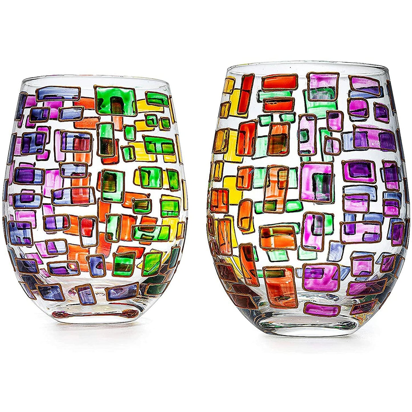 The Wine Savant Renaissance Vidrieras, cristalería artesanal pintada a mano, idea de regalo para ella, él, cumpleaños, mamá, inauguración de la casa, ideas de regalos para mujeres y hombres Art Deco (copas de vino sin tallo)