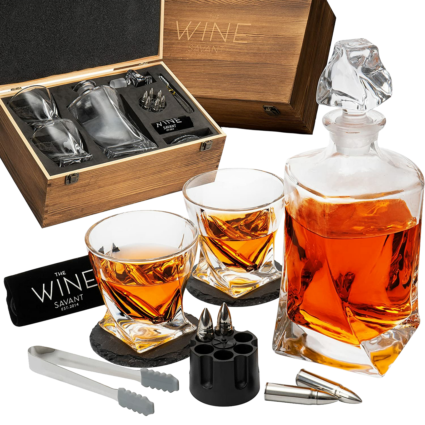 - Un set de regalo que supone el entretenimiento perfecto para cualquier amante del whisky. El decantador de whisky de 30 oz es sólido como el cristal y presenta un moderno diseño de tornado. ¡Este elegante e impresionante juego de decantador de whisky de lujo, único en su tipo, es perfecto para cualquier conocedor del whisky!