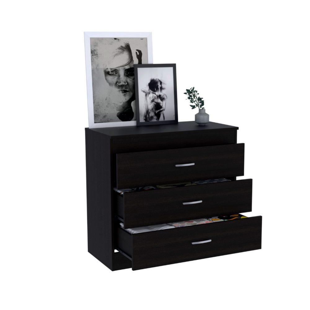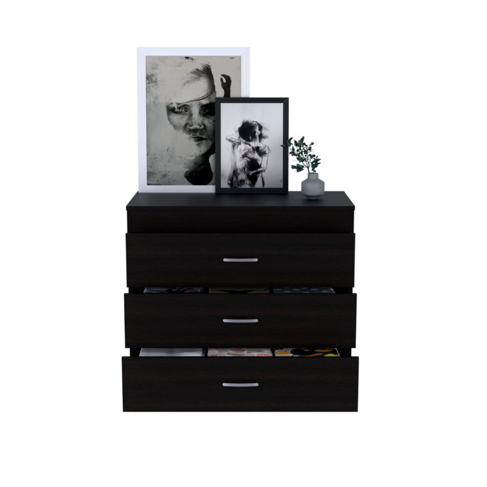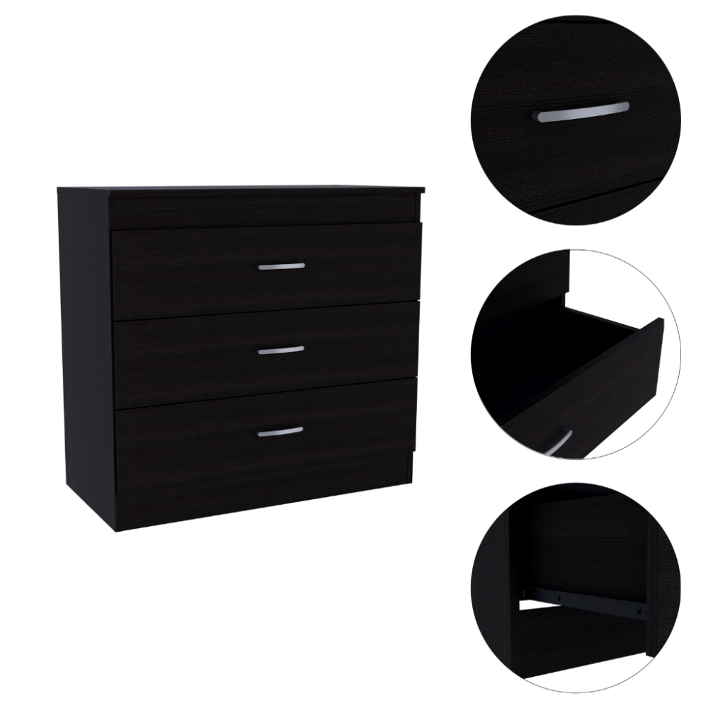 Three Drawer Dresser Lial, Superior Top, Metal Hardware, Black Wengue Finish