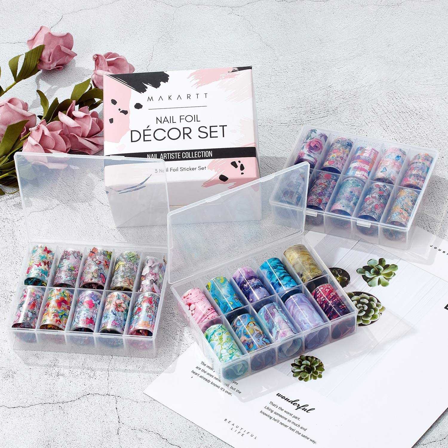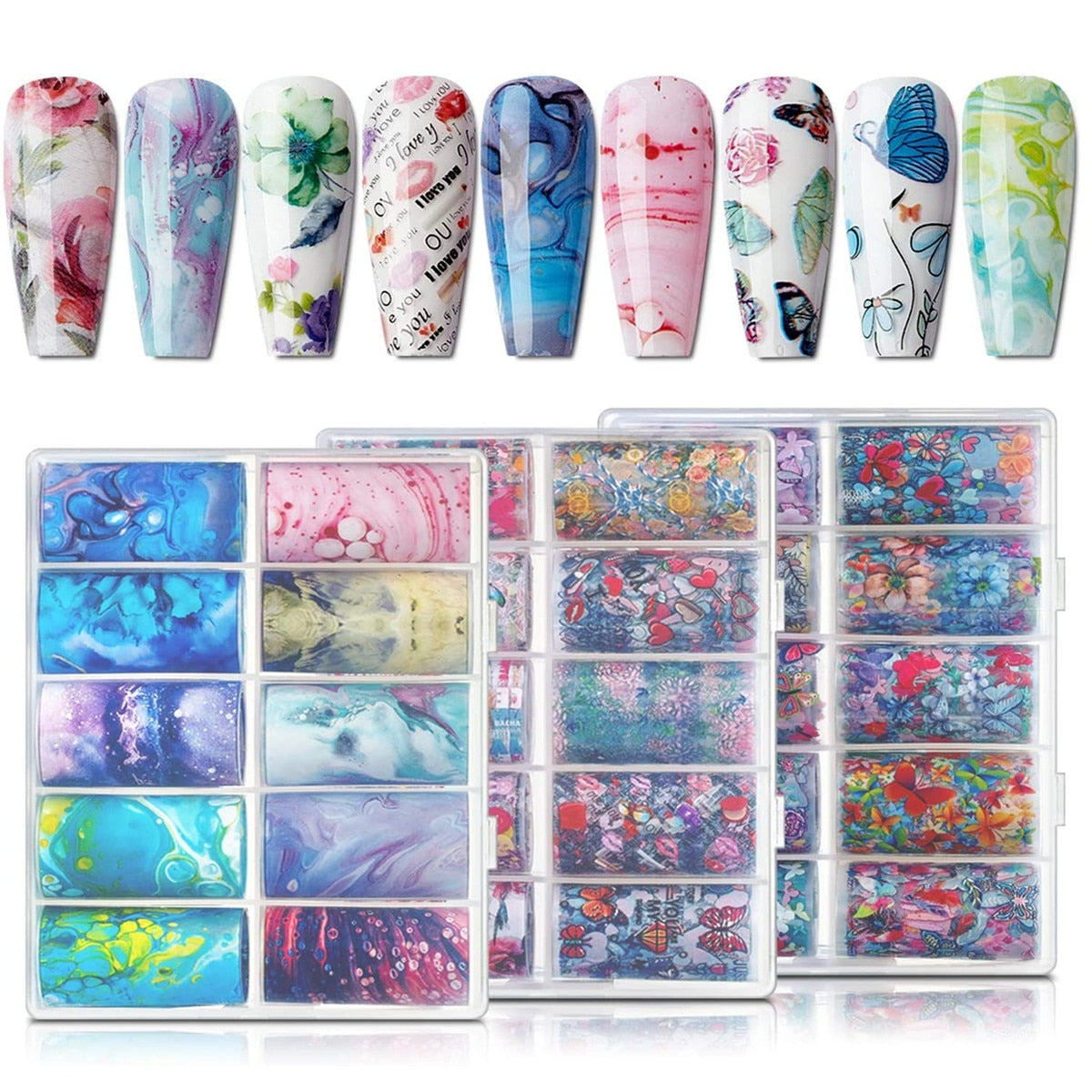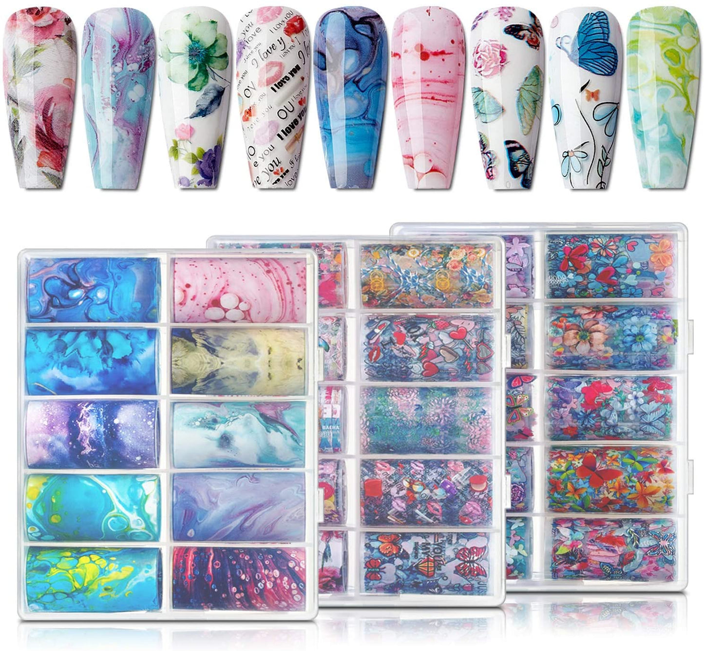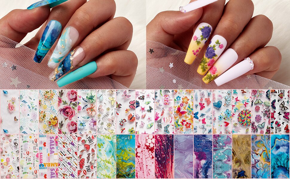 Nail Foil Sticker Kit, 30 Rolls Nail Foil Transfer Flower Butterfly Marble Design Nail Decals Nail Foil Transfer Sticker