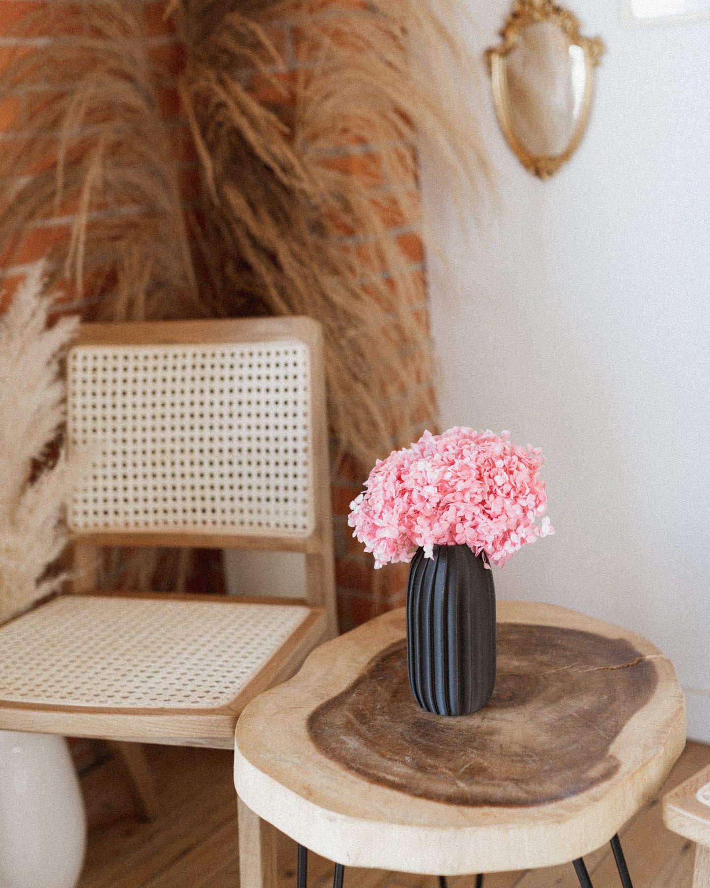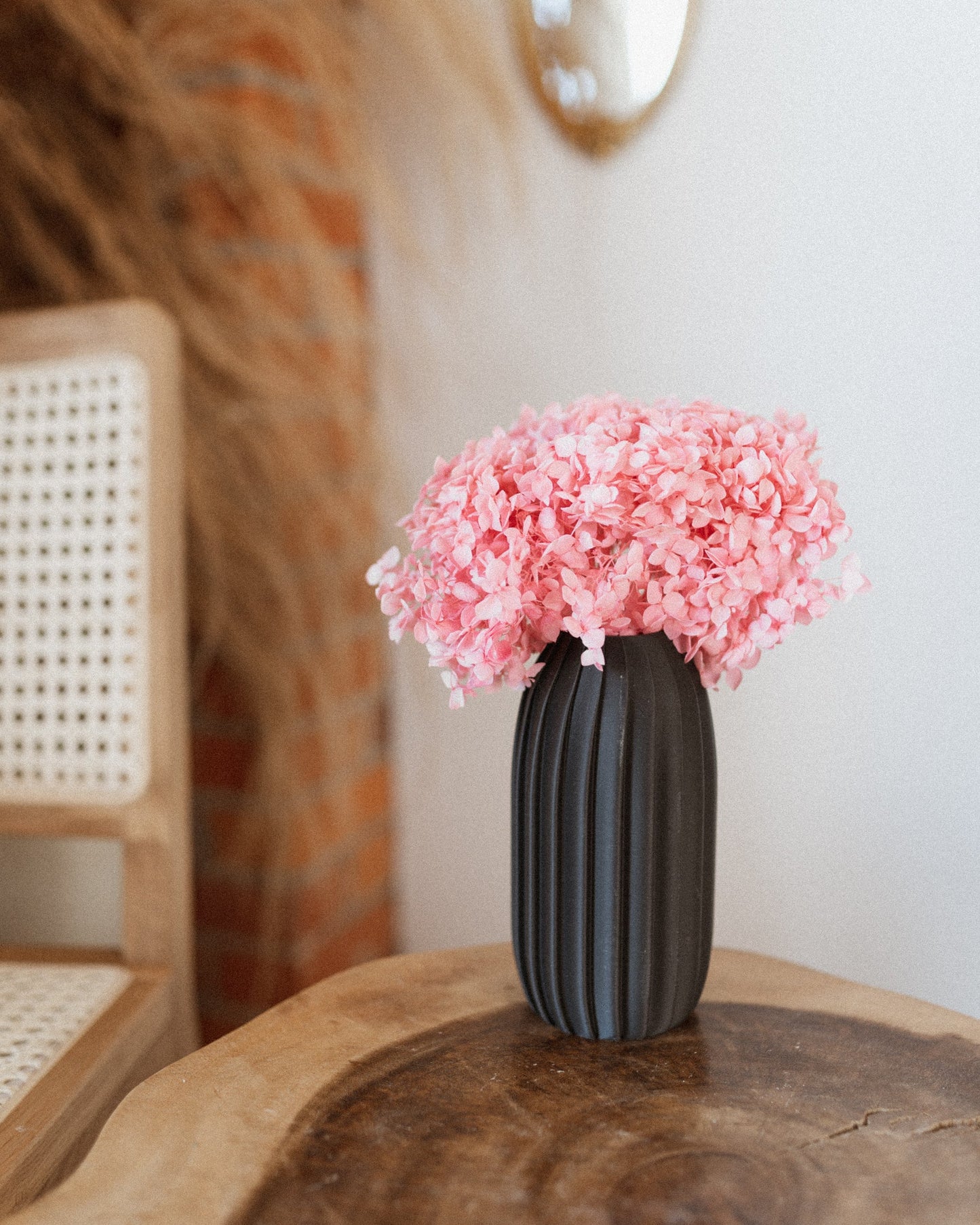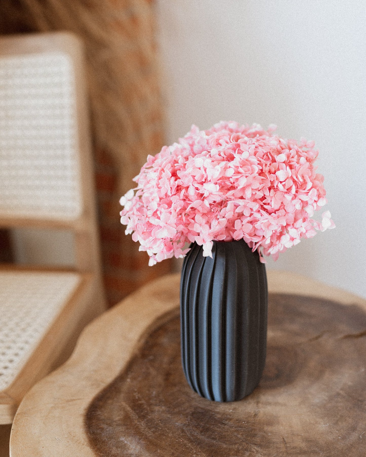 These large hydrangea heads are great on their own or pair with your DIY projects, Their vibrant pink color gives life to any space while offering detailed textures when perfectly paired with our Nami vase.