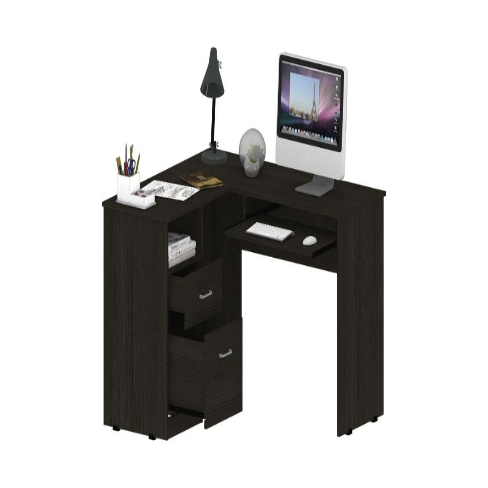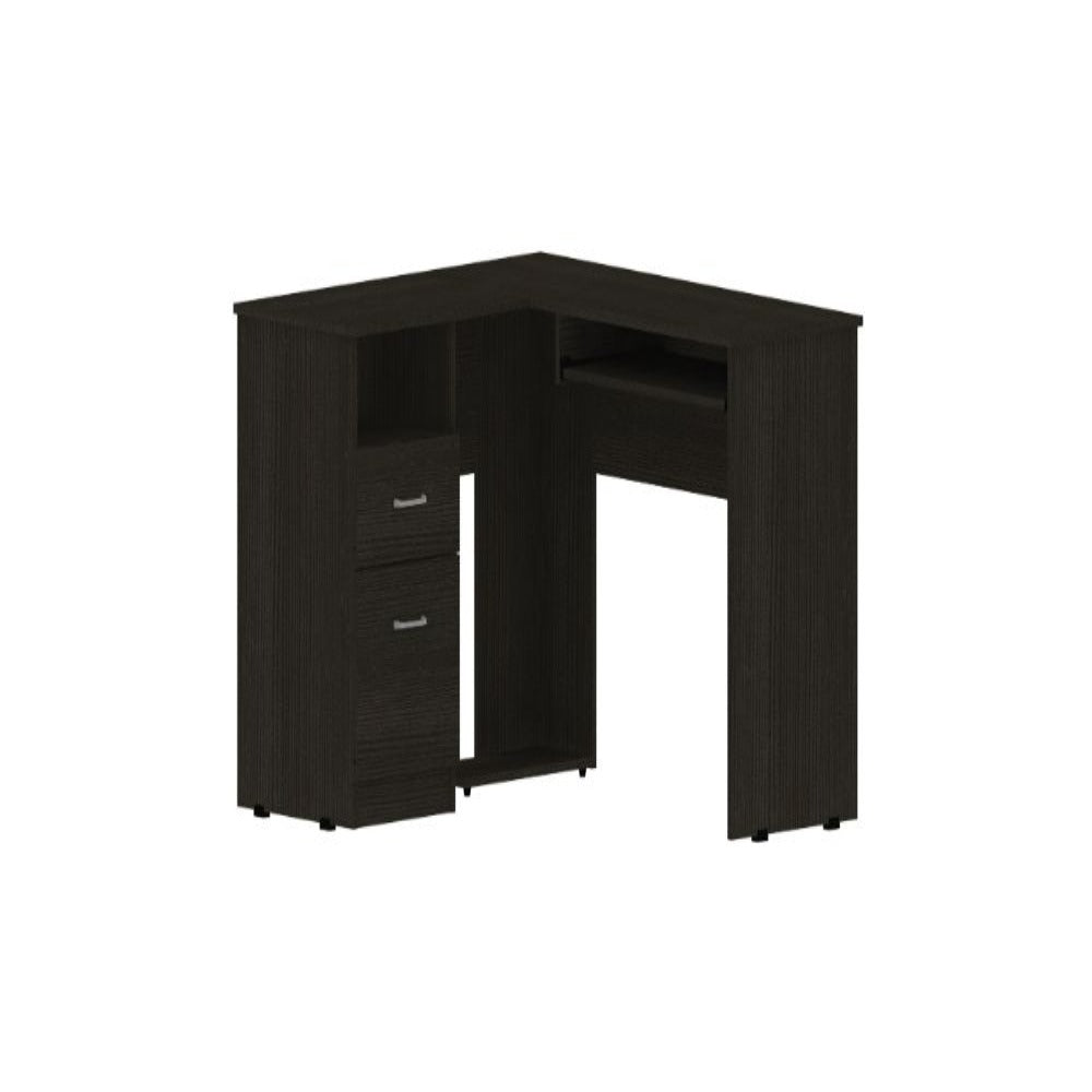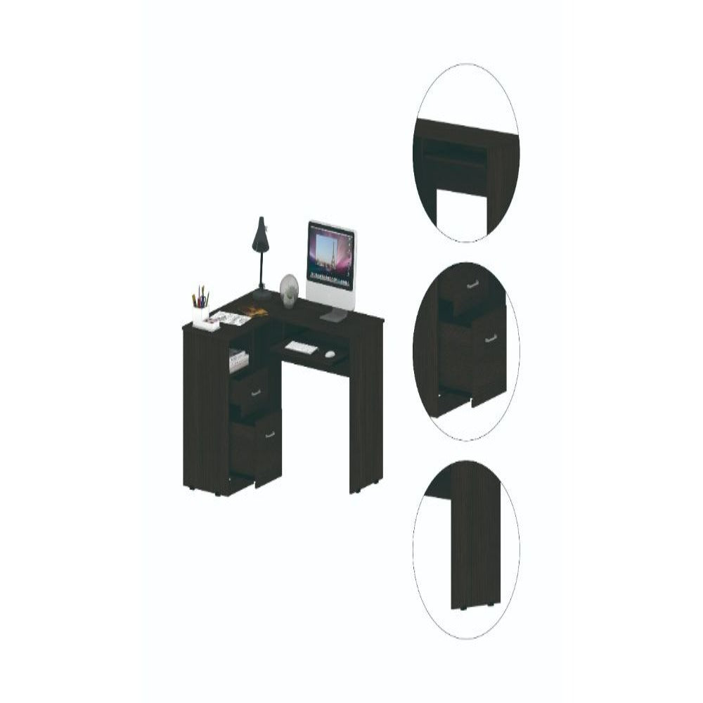 L-Shaped Desk Bradford, Keyboard Shelf, Black Wengue Finish