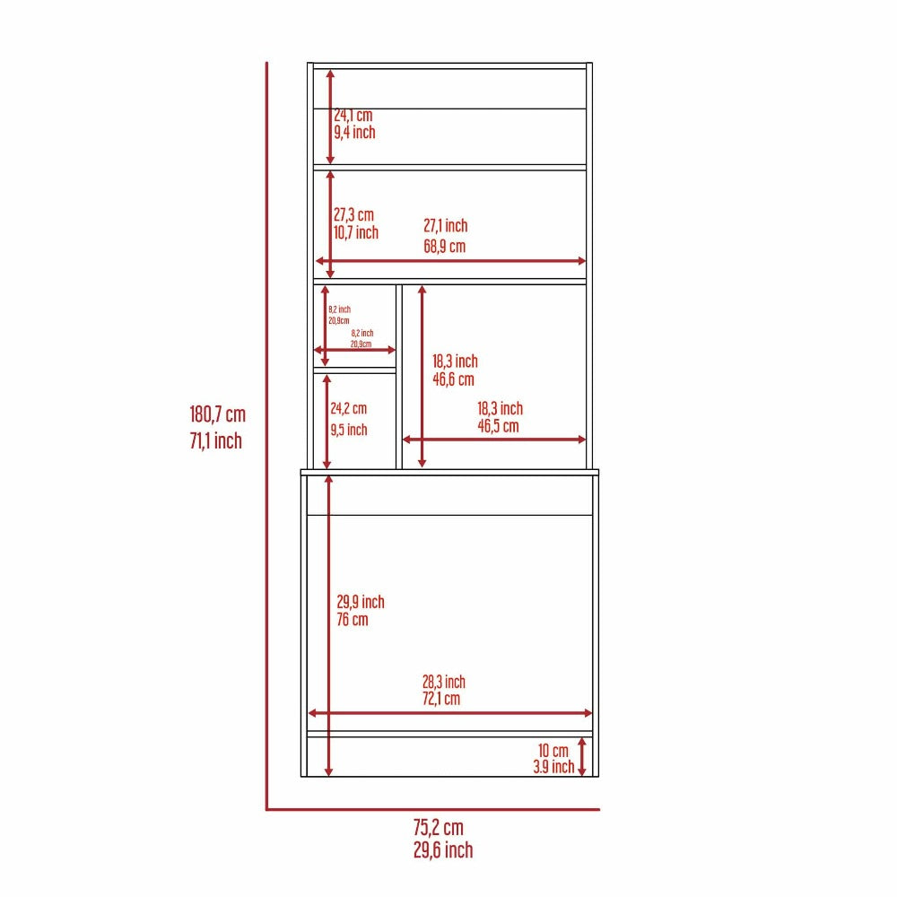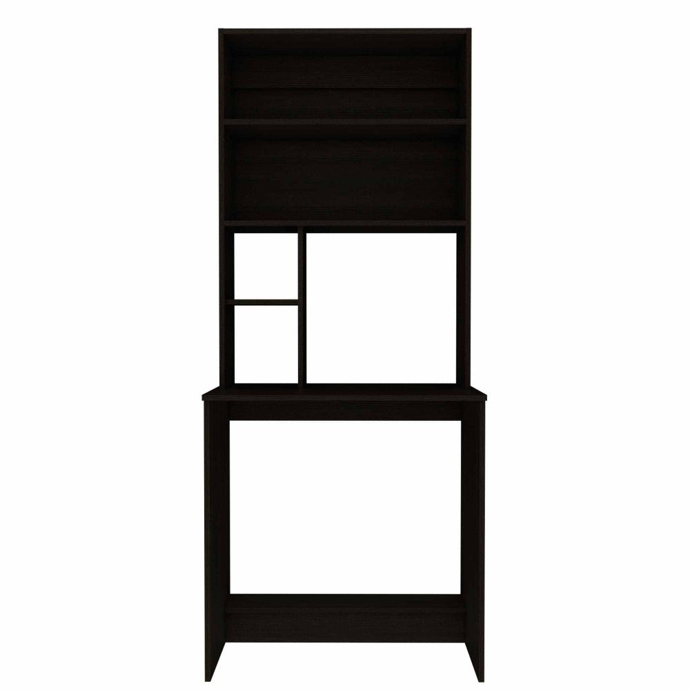 The Monroe is a sturdy and slim hutch desk standing that provides you with multi-level storage and organizational options. Its sleek and open design is perfect for narrow spaces or a home office. Compact yet spacious design, featuring five shelves in a compact design, perfect for home office and remote learning. Designed with Black Wengue manufactured wood.