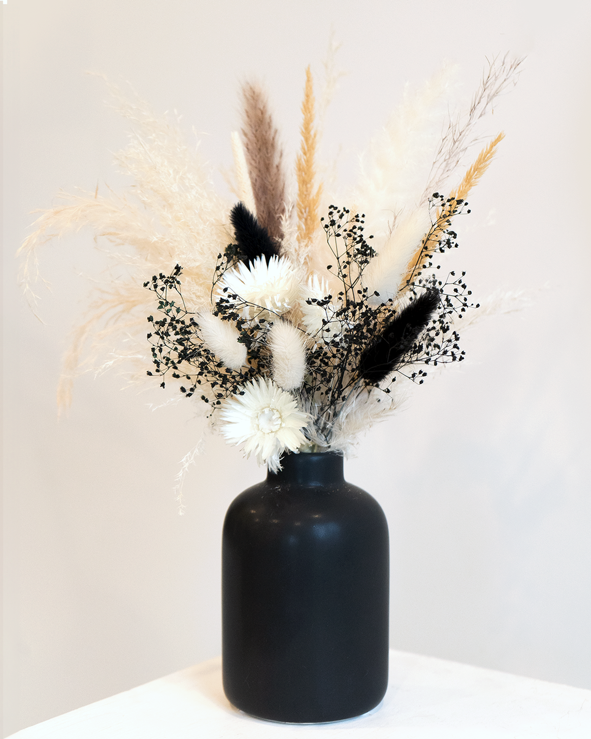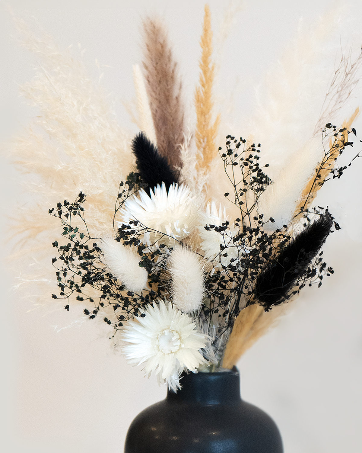 Discover the art of serenity in monochrome. Our Serenity Arrangement blends neutrals, blacks, and whites—a harmony of hues that brings balance and calm to your space. Elevate your surroundings with the timeless elegance of nature's monochromatic masterpiece.