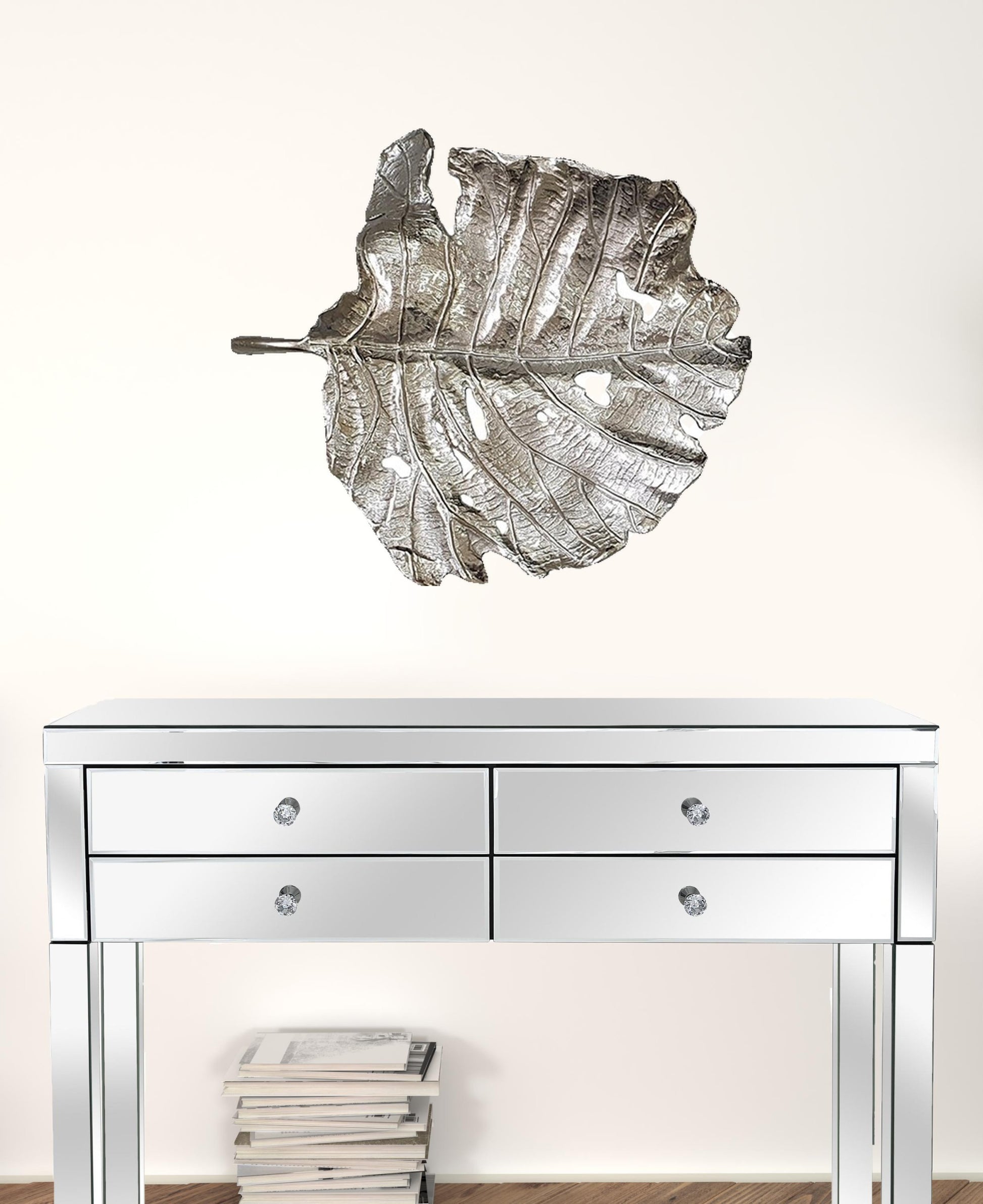 Embracing the beauty of nature in a modern metallic color palette, Set of 2 Shiny Silver Leaves Wall Art will serve as an alluring decorative accent on the walls of your home. The intricate detailing on the leaves is elevated with a gleaming silver finish that will immediately catch the attention of the guests. Made of 100% aluminum this versatile decor is not only fabulous as three dimensional art when hung on the wall but can also be used as decorative trays on the bookshelf or table. The style and sophistication of these beautifully sculpted decors will let an element of nature shine through your interior décor. 22.8” x 26.4” x 6.7”