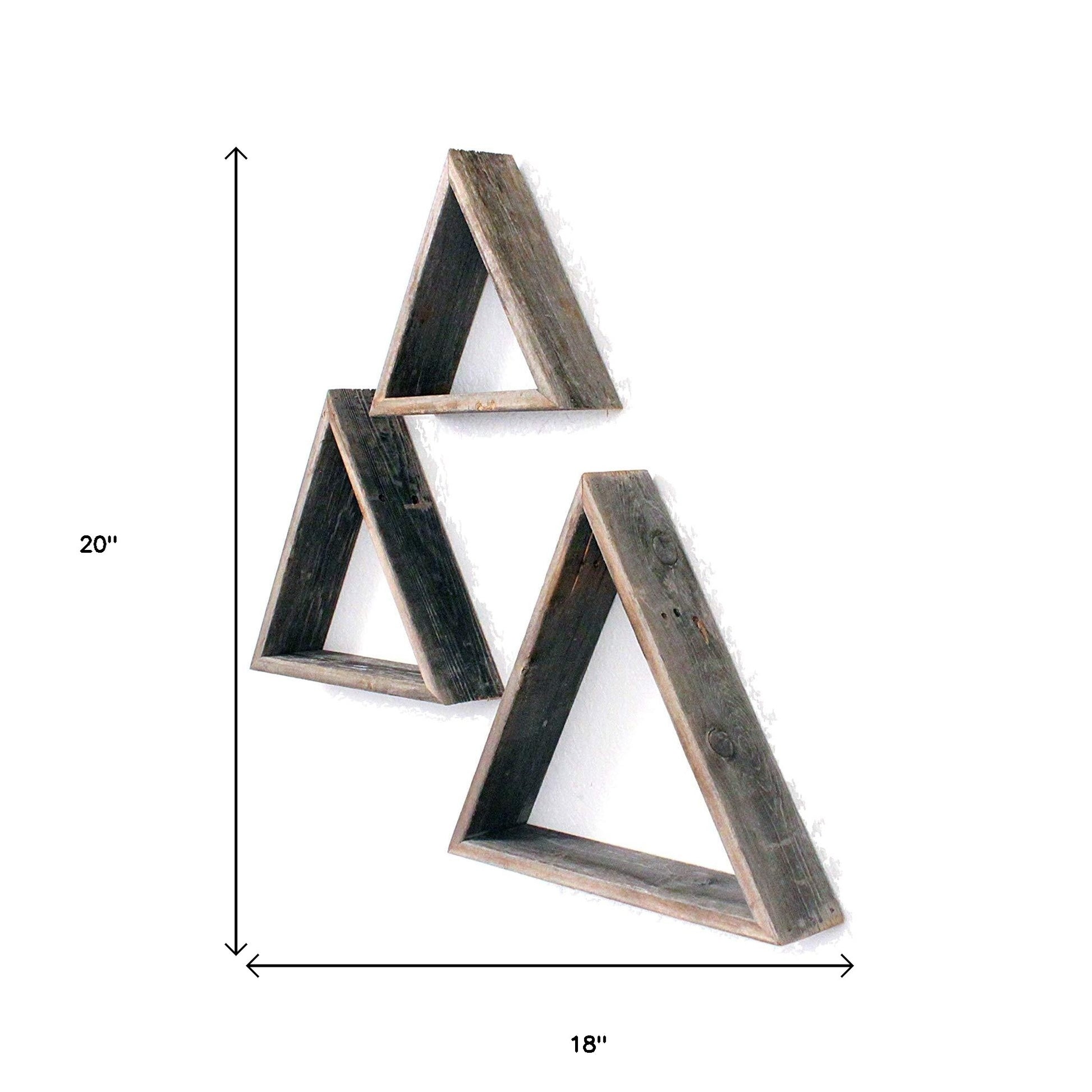 Set Of 3 Triangle Rustic Natural Weathered Grey Wood Open Box Shelve