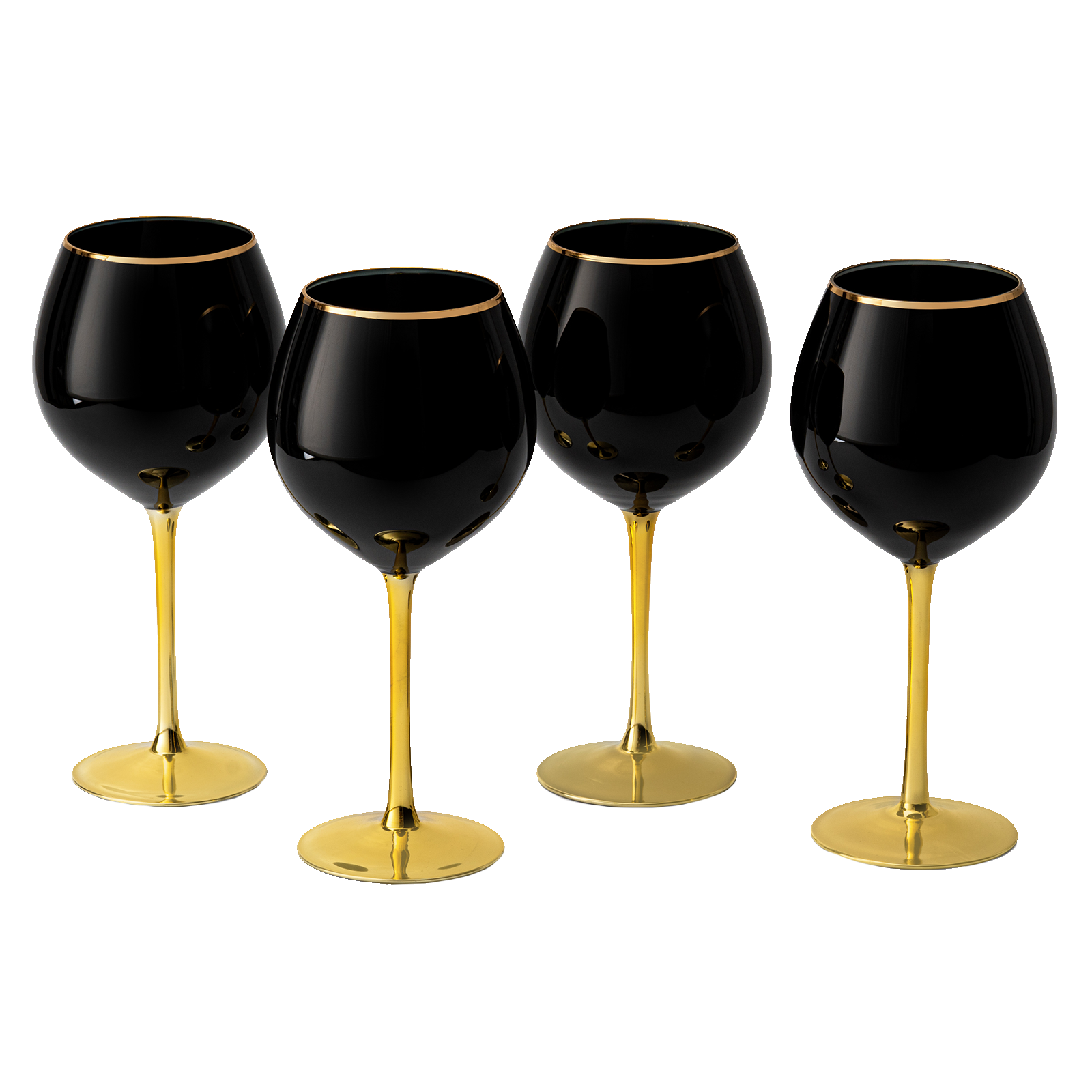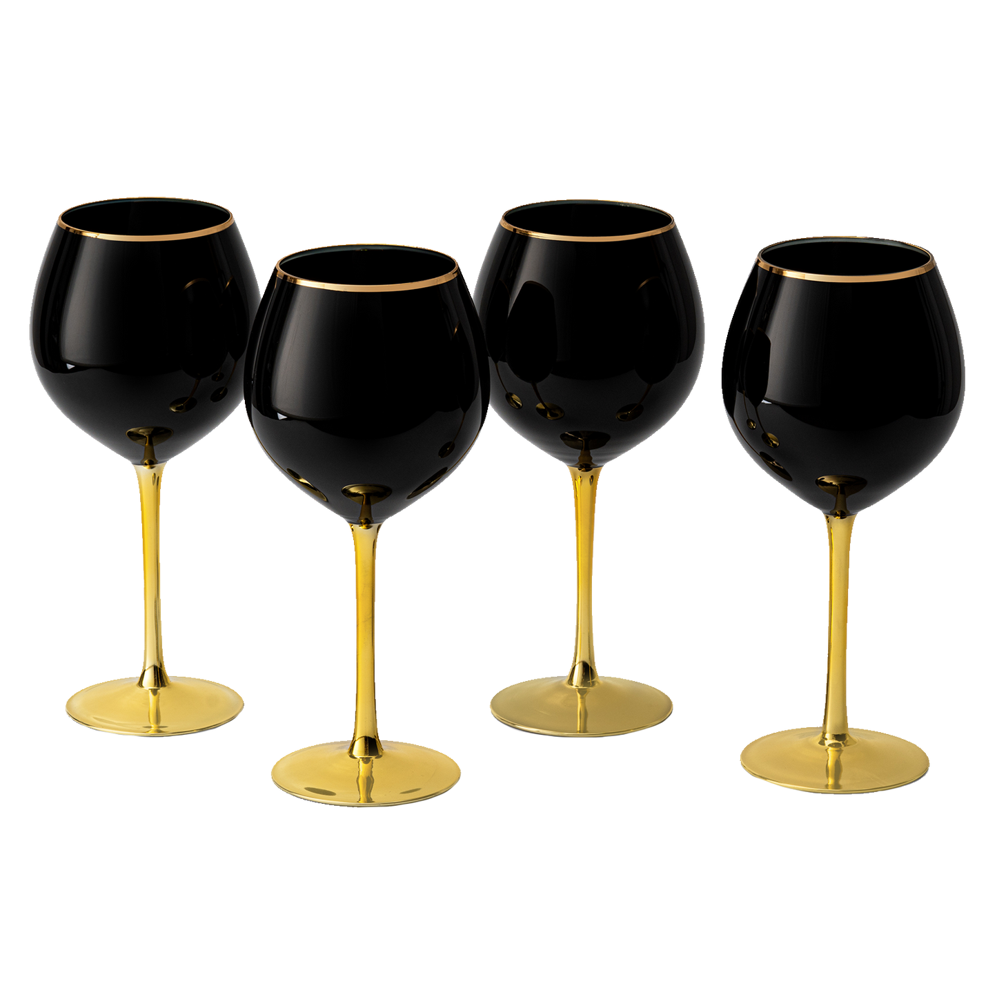 The Wine Savant Juego de 4 copas de vino negras con tallo dorado de 14 oz con borde dorado, copas de vino de color negro, copas de vino de lujo, degustación de vinos, regalo de boda, aniversario, cumpleaños