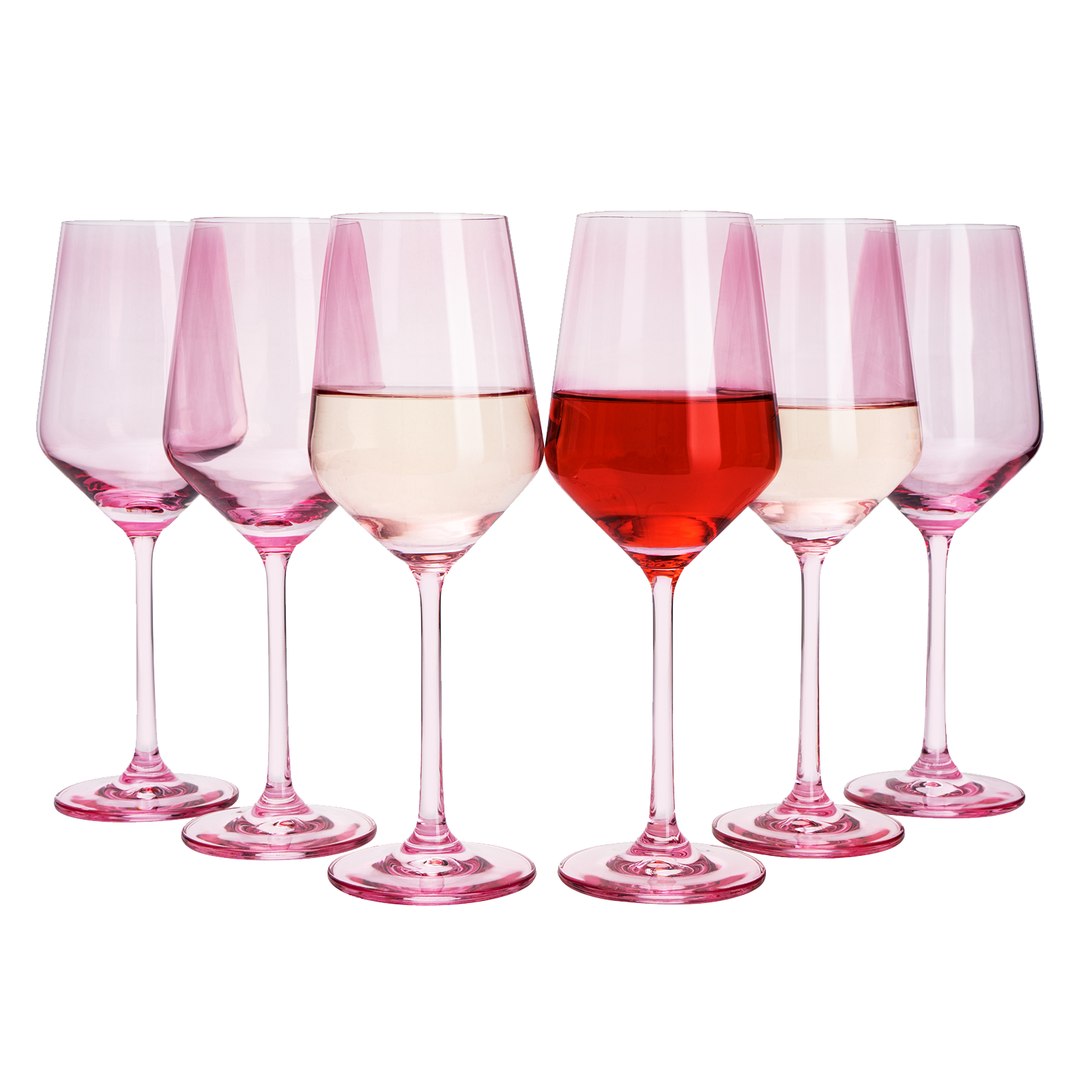 Juego de copas de vino de colores, juego de 6 copas de 12 oz, estilo italiano único de tallo alto para vino blanco y tinto, agua, copas de margarita, vaso de color, regalo, cristalería viral hermosa (rosa rubor)