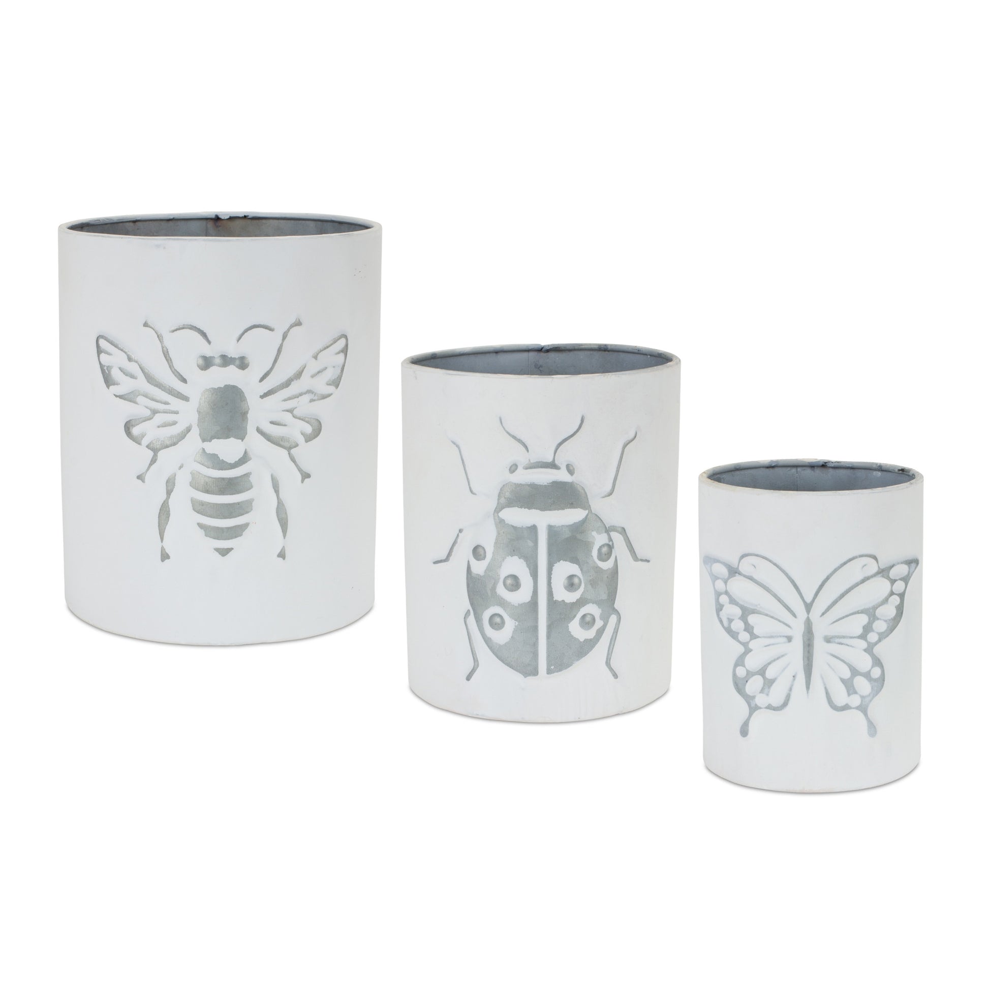 Enhance your indoor space with this set of three 7-inch white metal round pot planter. Crafted from sturdy metal, these pot planters effortlessly blend style and functionality. The round shape adds a touch of elegance, while the white color complements any decor with its versatile beauty. Each planter has a capacity of 8.8658, providing ample space for your favorite plants to thrive. Perfect for country-style interiors, this set includes three planters, allowing you to create a cohesive display or split them up throughout your home. Whether placed on a windowsill or as a centerpiece on a table, these pot planters will bring natural beauty to any room. 7.75-inch H x 6.5-inch W x 6.5-inch D
