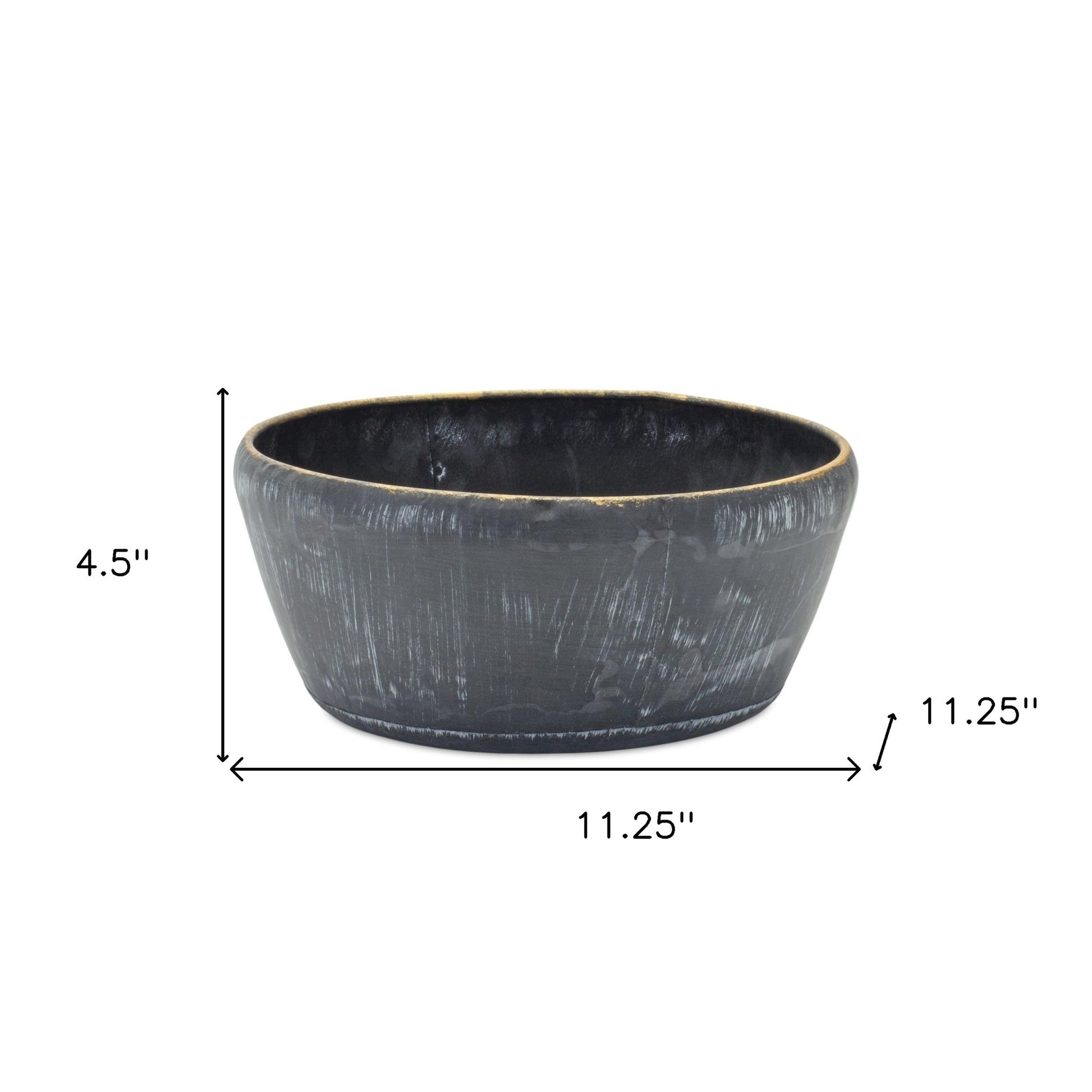 Enhance the beauty of your indoor space with this set of two 11-inch black metal round pot planter. Crafted from high-quality metal, these rustic-style planters add a touch of elegance to any room. With a round shape and a deep black color, they effortlessly blend in with any decor. Each planter has a generous capacity of 14.961, providing ample space for your favorite plants to flourish. Whether you choose to display them on a windowsill, a shelf, or as a centerpiece on your dining table, these pot planters are sure to make a statement. Bring nature indoors and create a cozy atmosphere with these stylish and durable planters. 4.5-inch H x 11.25-inch W x 11.25-inch D