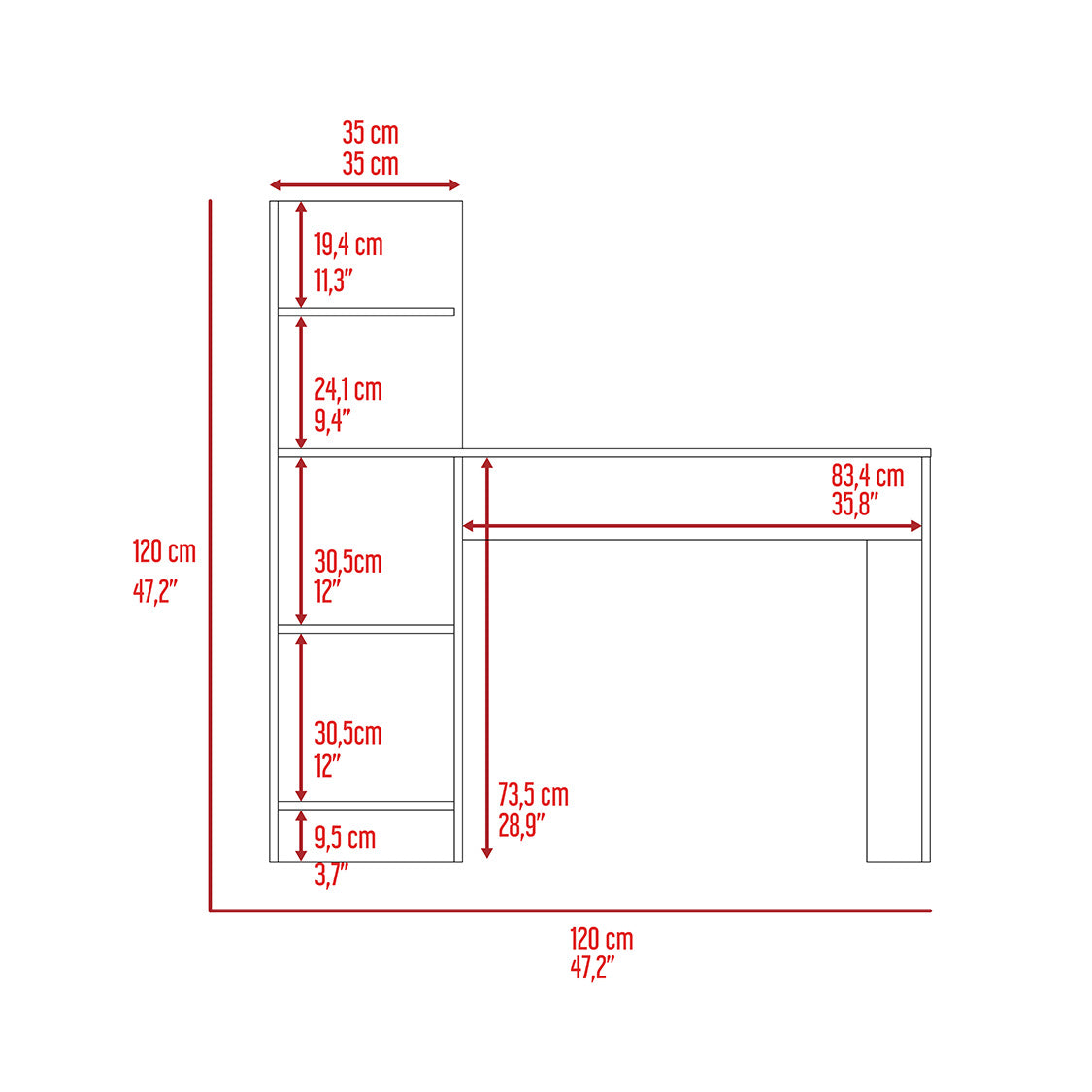 This computer desk is a modern, multifunctional desk that will give you an excellent and ready-to-go space to study or work from home. Its top surface of 47.2 inches wide and 17.7 Inches deep will allow you to have laptops and monitors plus the right amount of space for keyboards and a mouse. The two shelves on the bottom left side will (12-inch High x 13-inch wide x 17.3 in Deep) store more important items for you and the top shelf on the top will give you the space you need to frequently use things that you don't want to get in the way while you work and will allow you to have an organized. Designed with elegant White and Pine manufactured wood.