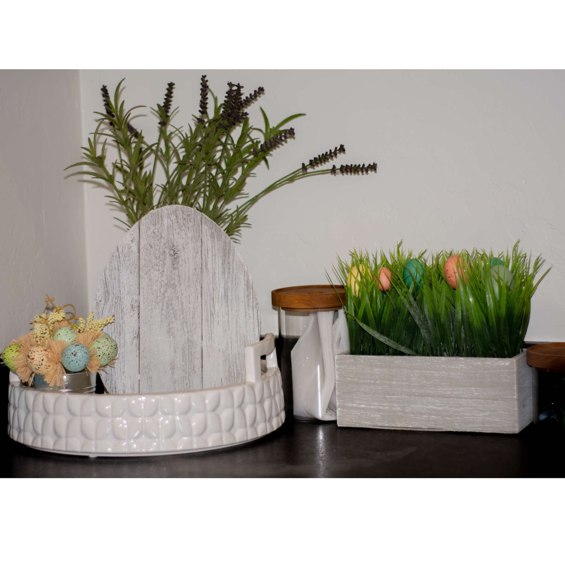 The 12" Farmhouse White Wash Wooden Large Egg will be a delightful addition to your festive decor. Use on it's own as a charming accent, pair with other seasonal decorations, or can even be used as a great spring craft idea. Enjoy placing your own embellishments to create your very own customized Large Egg. Crafted from 100% reclaimed cedar, this distressed egg makes a unique and fun decorative option. 12” x 9.5” x 1”.