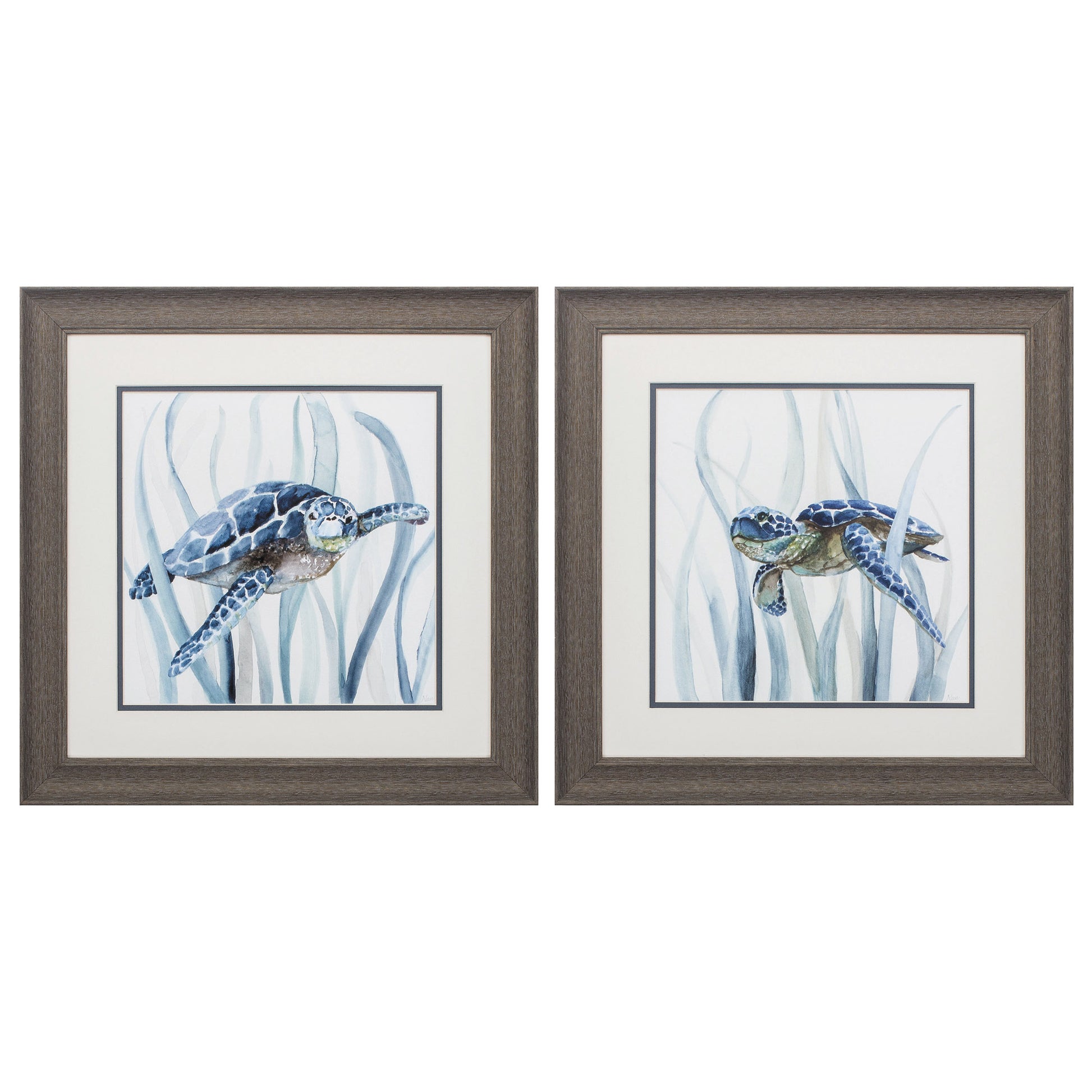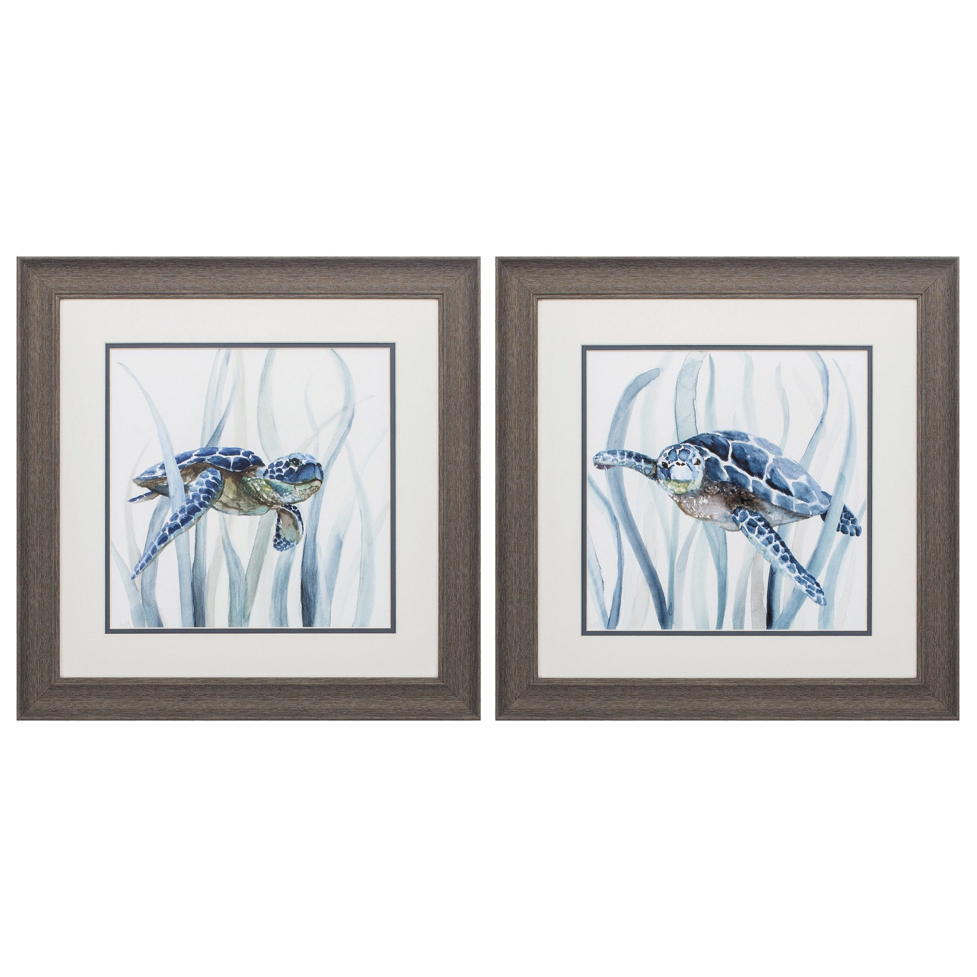19" X 19" Distressed Wood Toned Frame Turtle In Grass (Set Of 2)