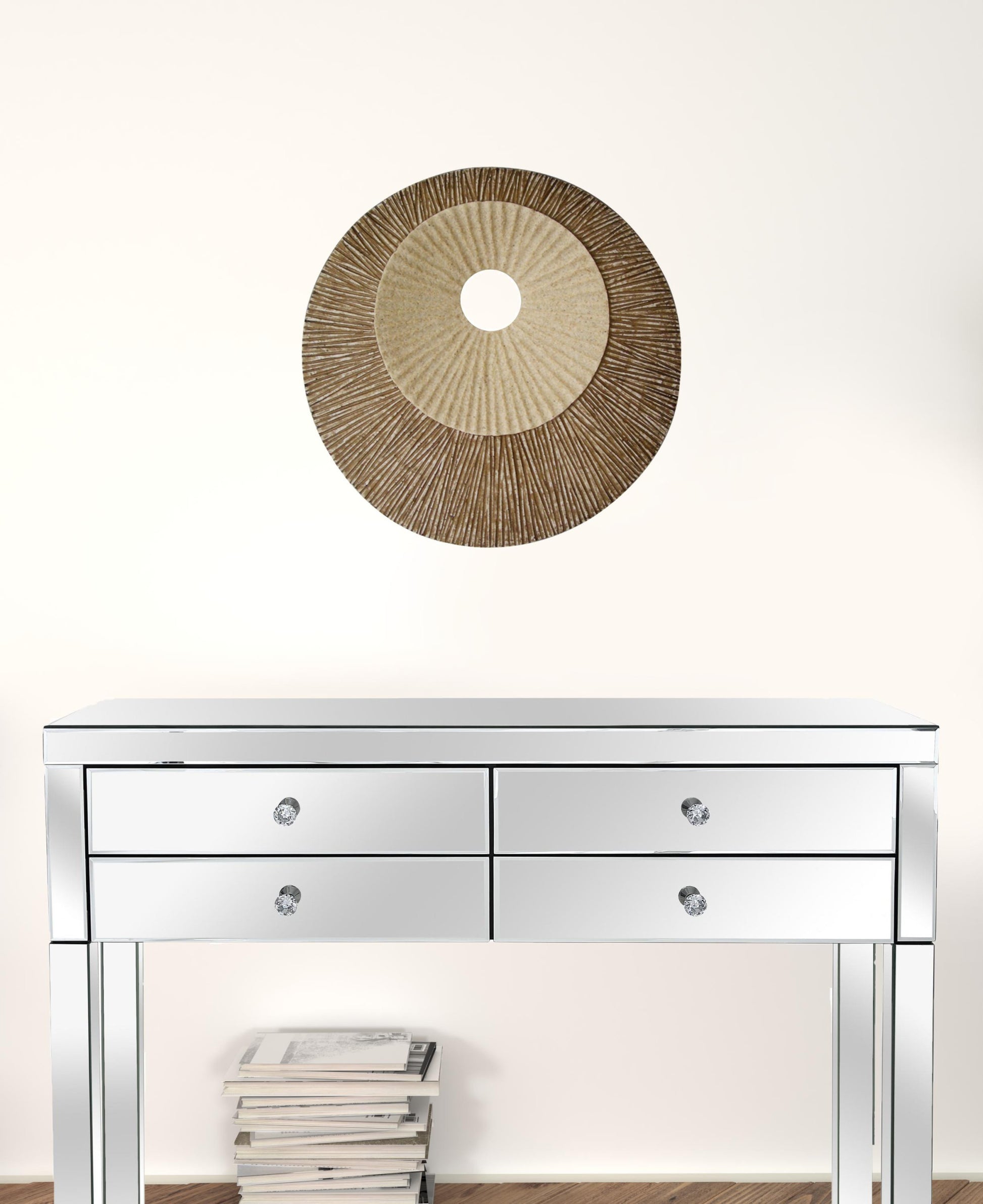 featuring simple spiral modern and contemporary design, our round double layer wall plaque will put a tantalizing visual effect on your entire home setting. it comes in a sand color circle design complemented with ribbed finish meant to seamlessly blend with existing decor in your home. this is a part of our wall art collection that is perfectly crafted to aesthetically wow you and your guests for many years to come. round double layer ribbed wall plaque 19" X 19" X 2.5"