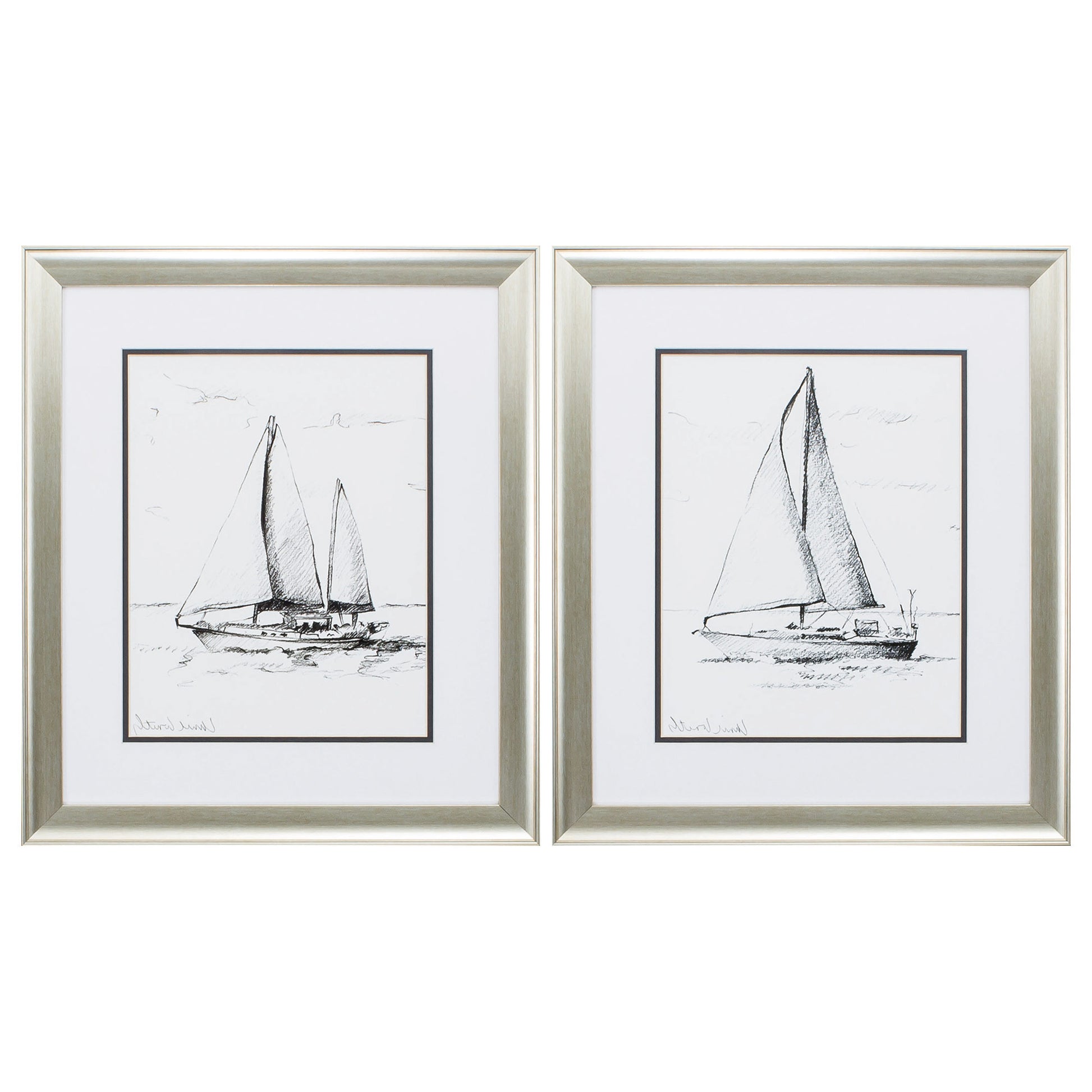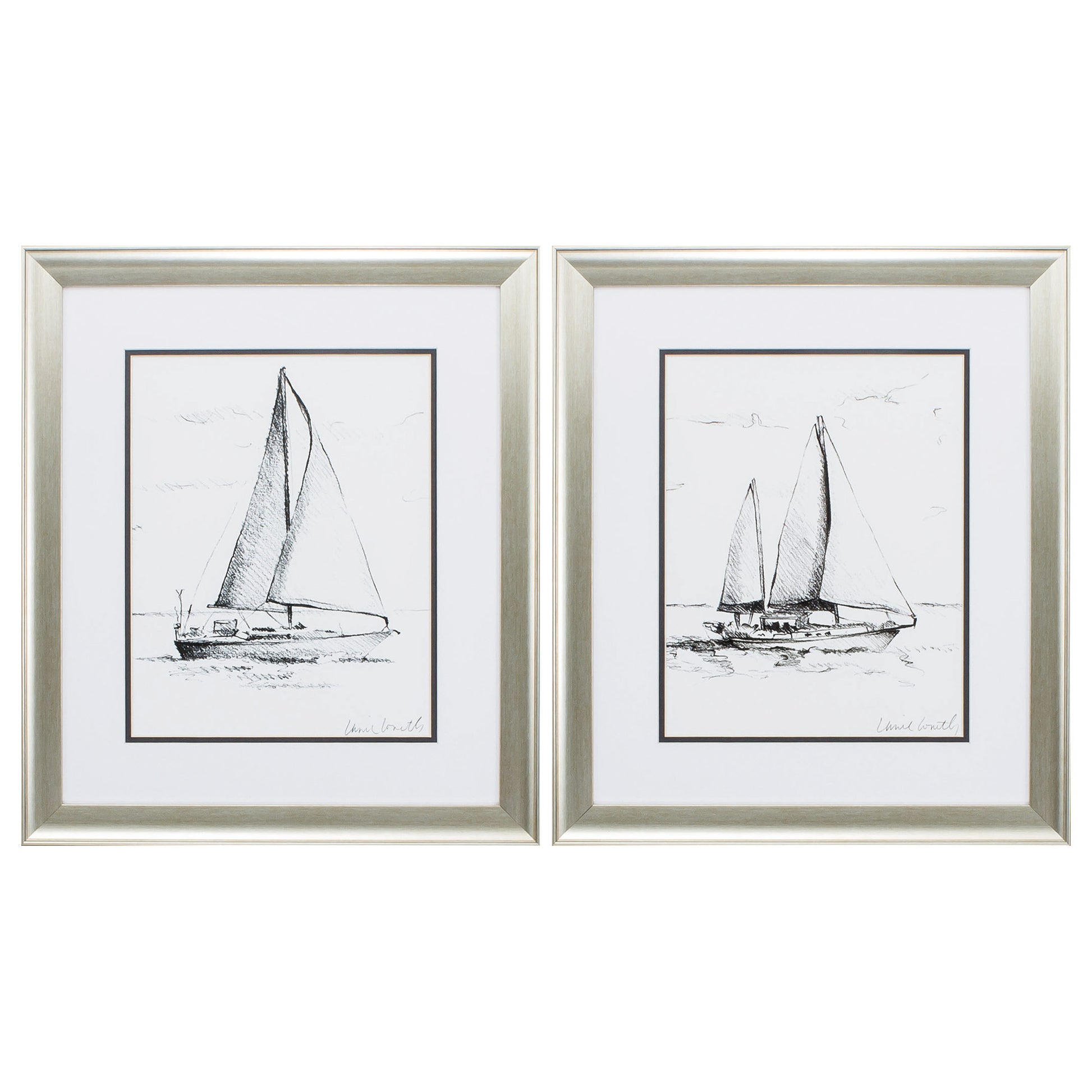 Set of Two 22" X 19" Sail Boat Sketch Silver Framed Wall Decor