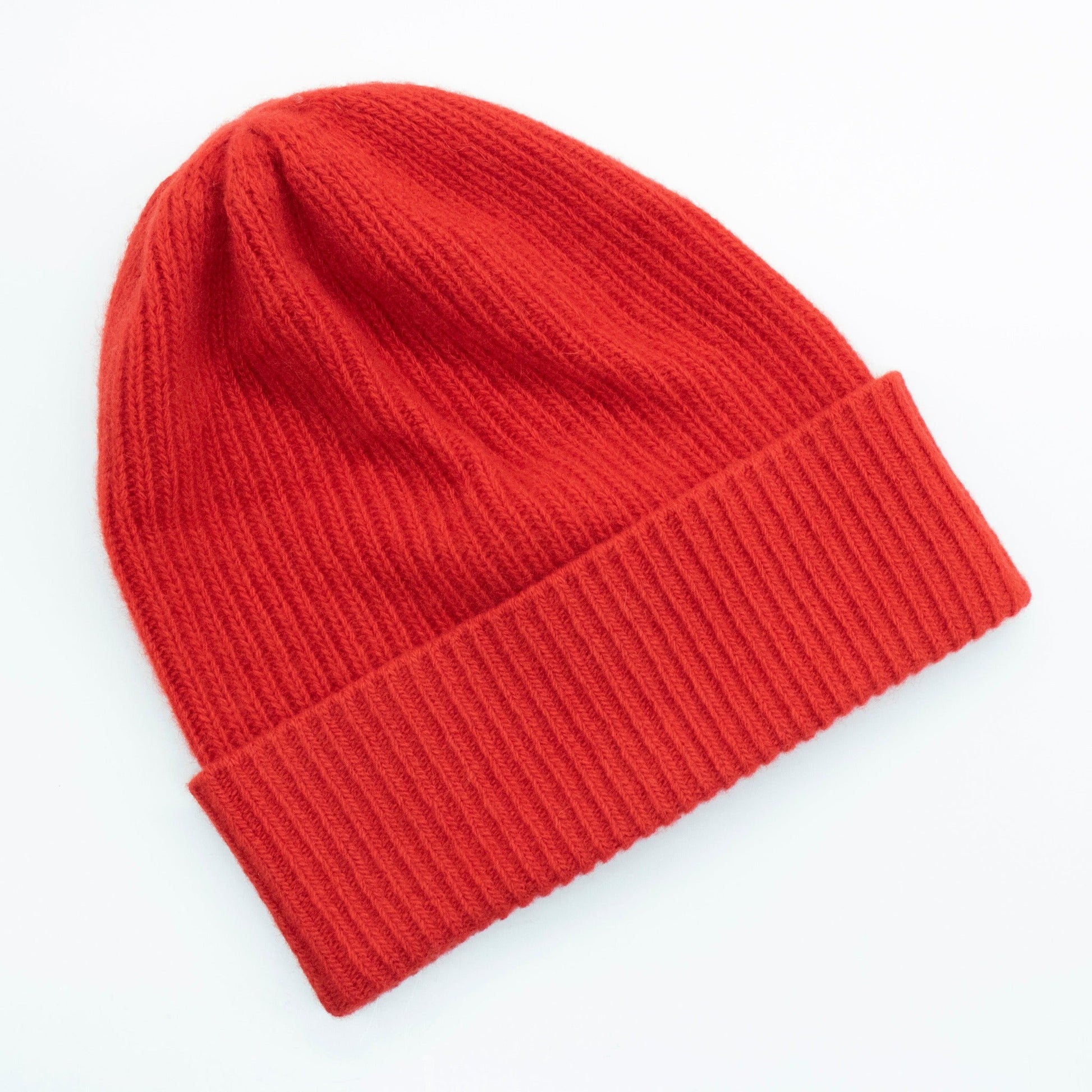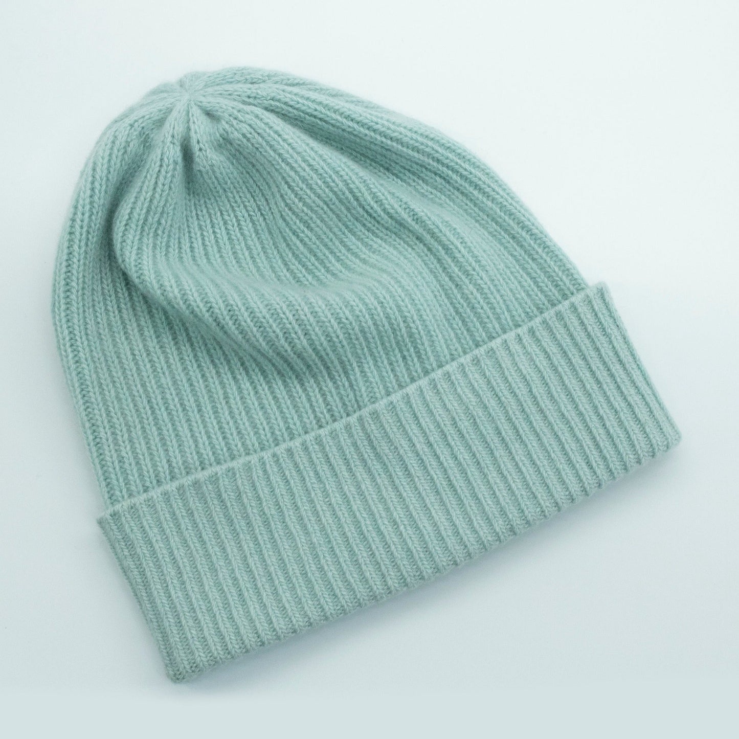 LADIES CASHMERE RIBBED HAT WITH FOLDED CUFF