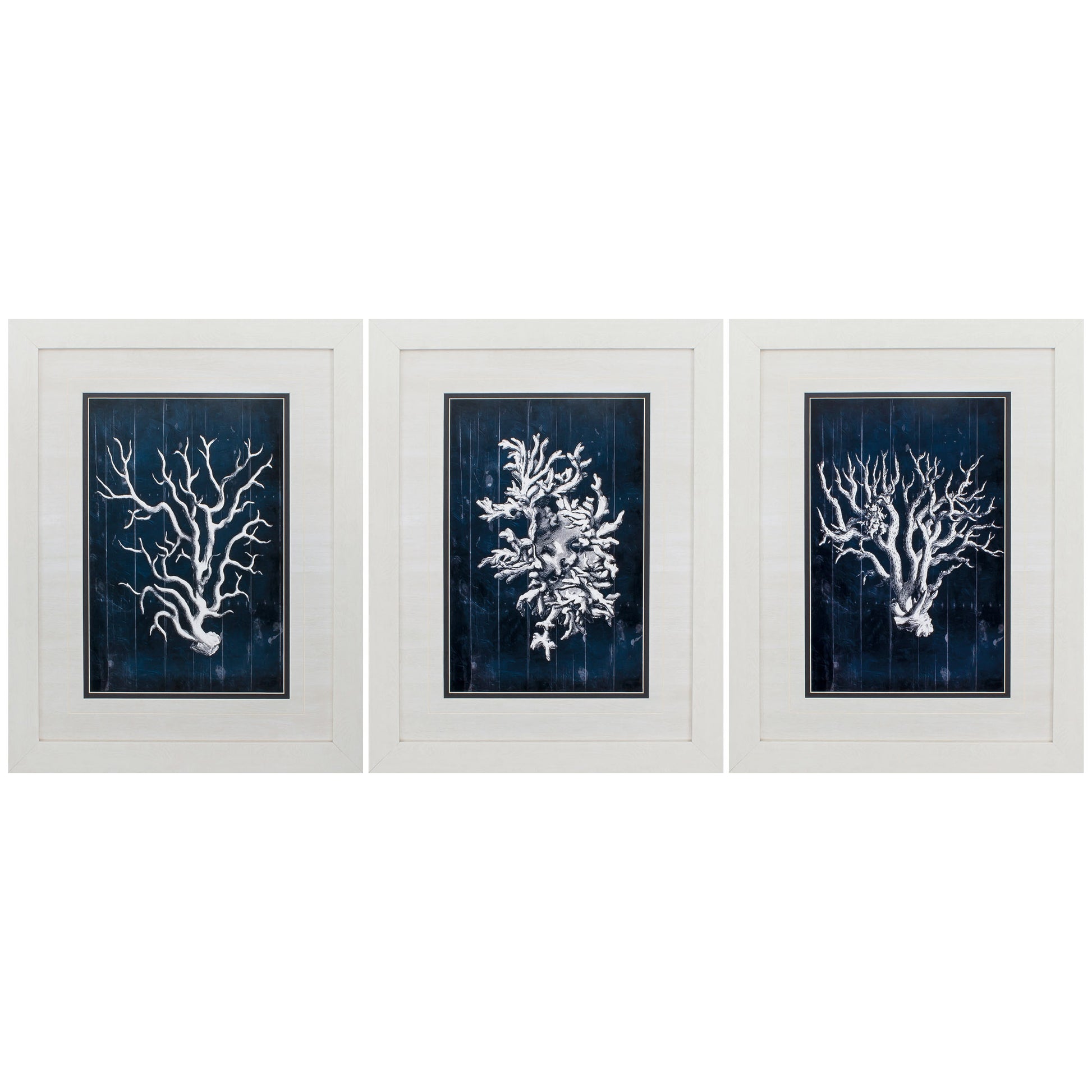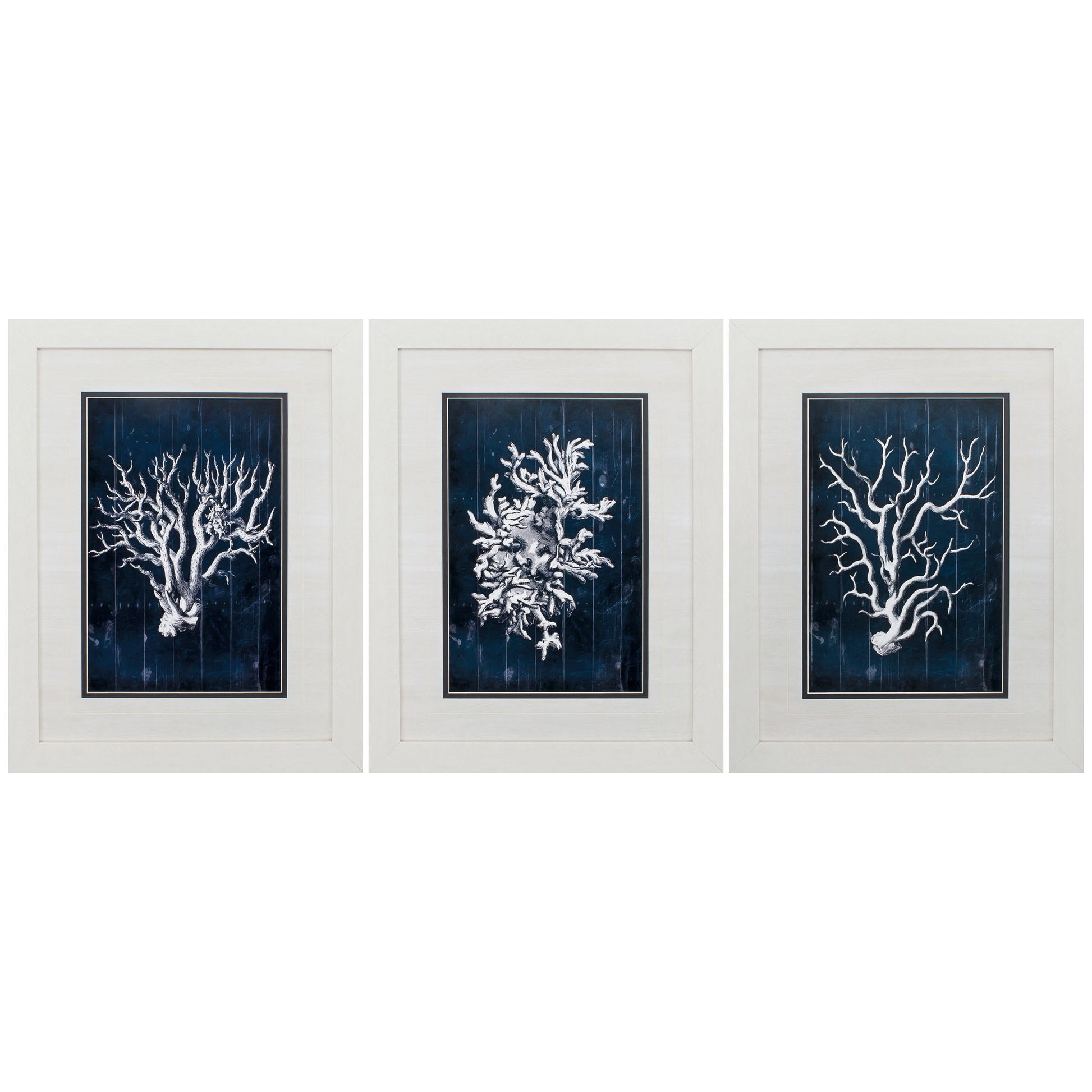 21" X 27" White Frame Wood Coral Blue (Set Of 3)