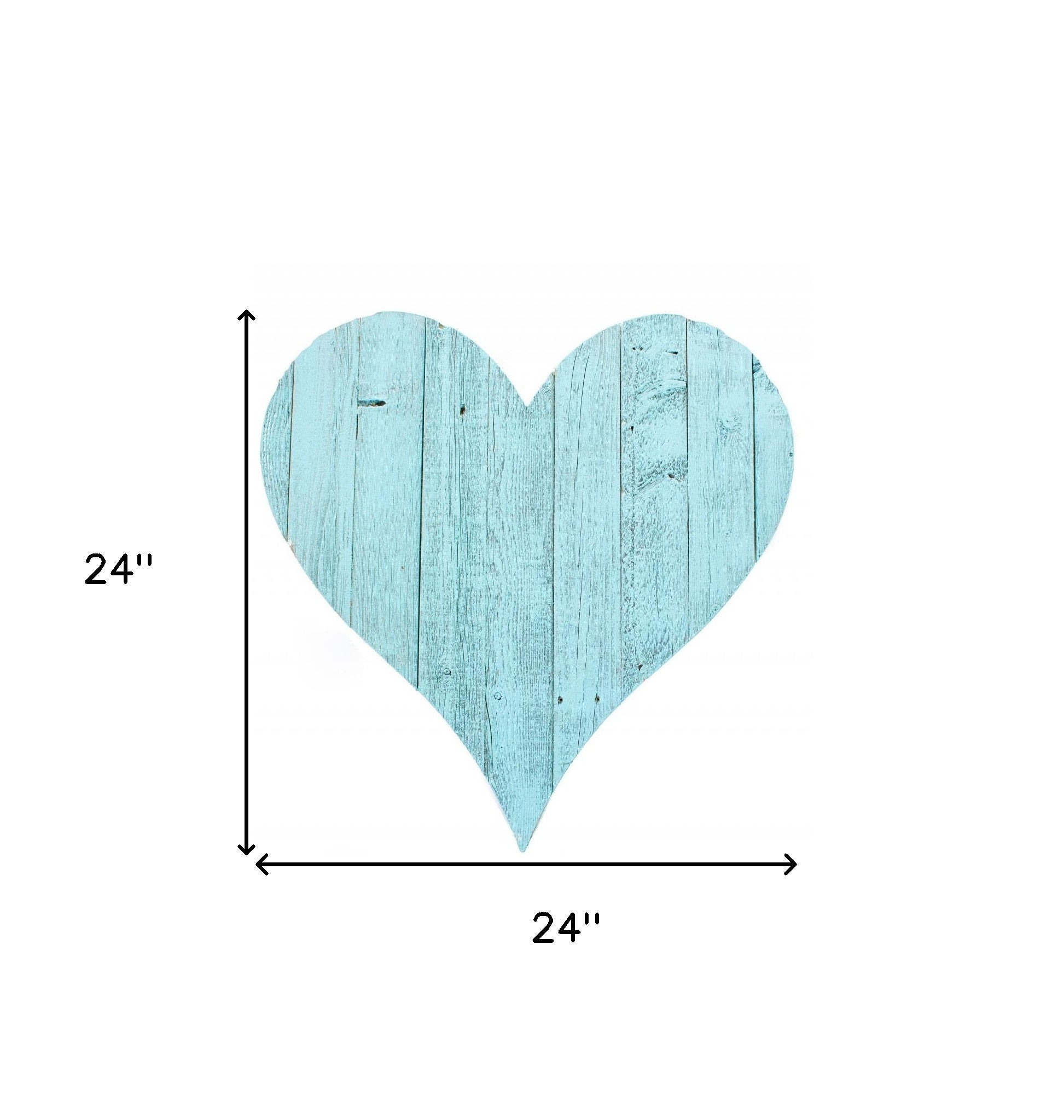 24" Turquoise Reclaimed Wood Heart Wall Decor