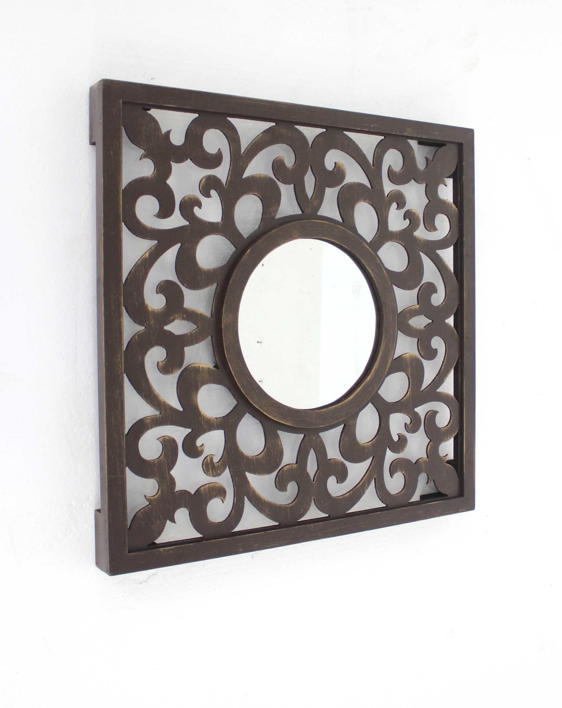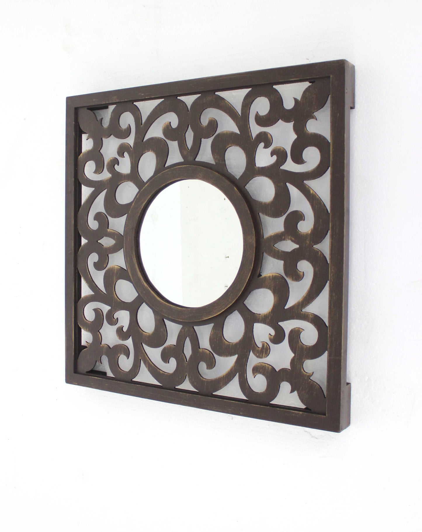 Built with alluring style and made to last, our vintage wall mirror will pass for a perfect addition to your bathroom or dressing room. With an exquisite vintage appearance, our espresso finished framed wall mirror will not only excite you and your visitors but will also complement the existing fixtures and furniture in your home. As part of our unique wall art, this mirror wall art that comes with slightly weathered wooden surface will definitely make dressing, makeup and grooming an exciting routine for you for years to come. - Vintage collection - Espresso finish - Floral sculptural pattern - Square shaped - Cosmetic mirror