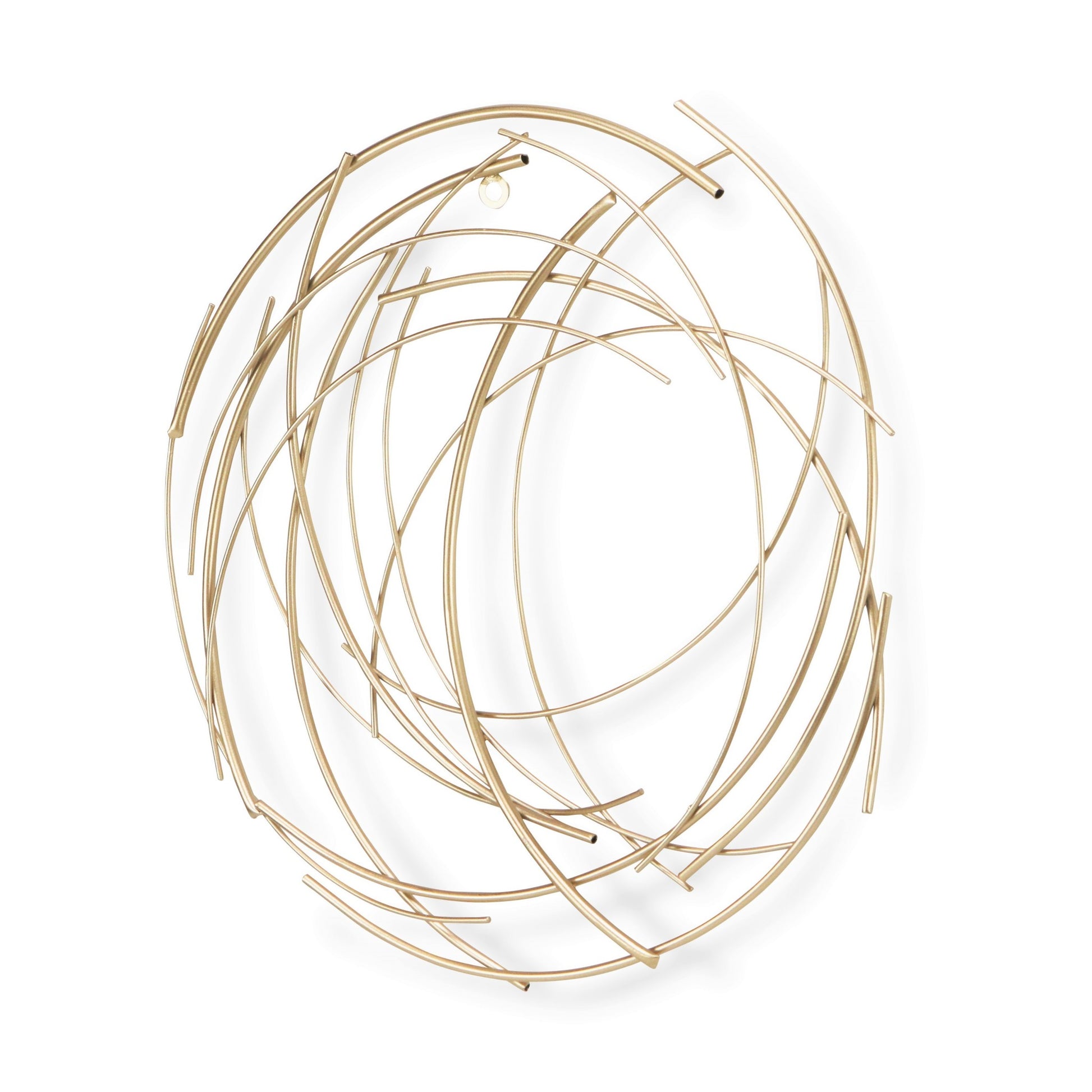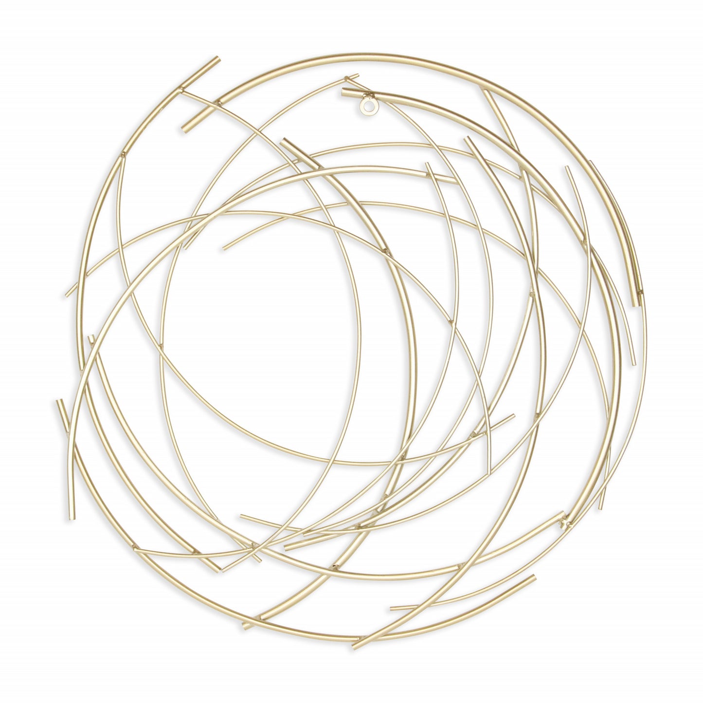 The gold metal abstract round hanging wall art decor is the perfect decorative accessory for your home. Hang on your wall to add some up to modern and contemporary fashion and decoration. This unique abstract overlapping wall art will instantly liven up your space. 25.5" around, this fun piece brings dimension to your walls. 25.5-inch H x 25.5-inch W x 1-inch D