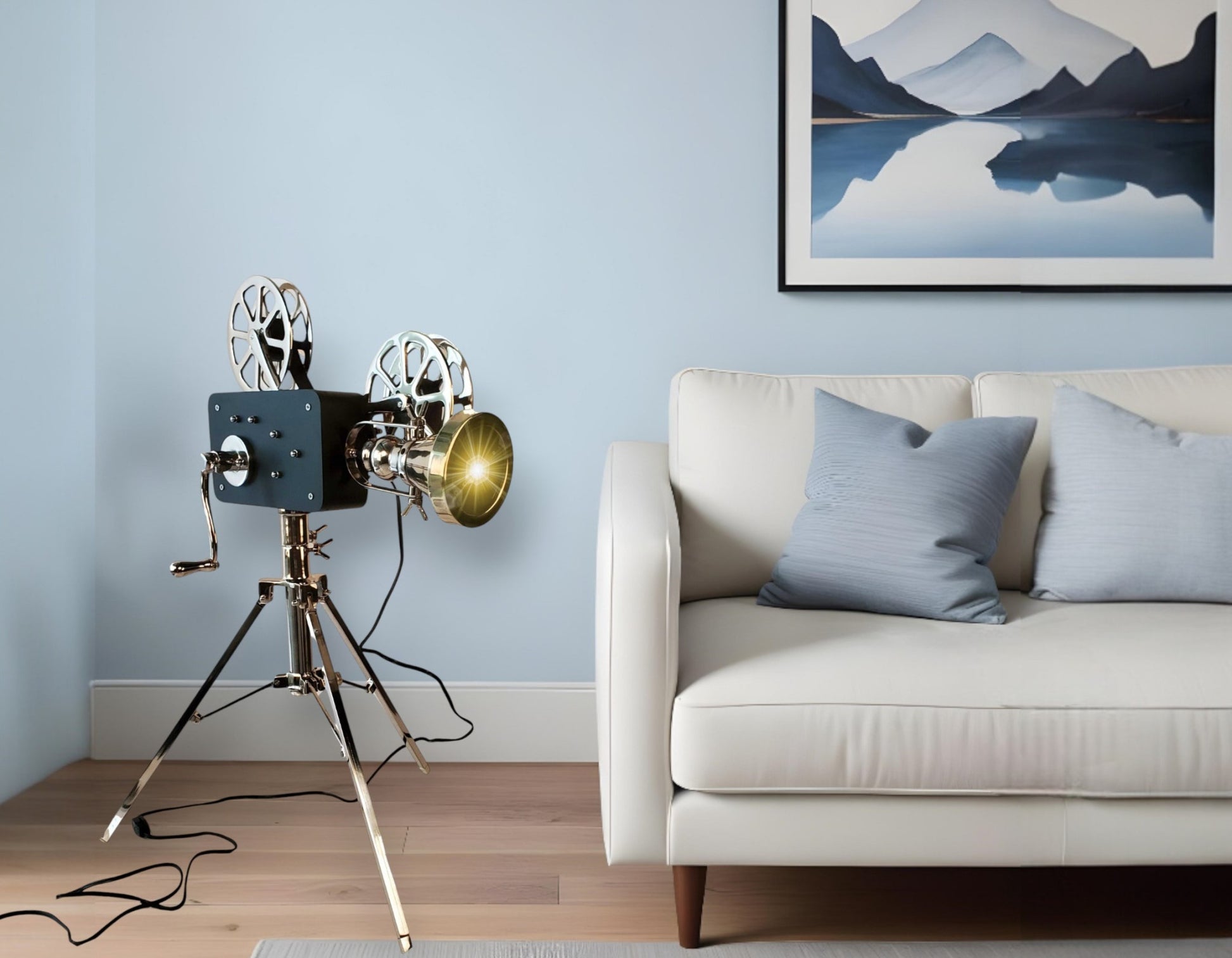 The 36" black and silver buffed aluminum movie projector is an optomechanical device for displaying motion picture film by projecting it onto a screen. Most of the optical and mechanical elements, except for the illumination and sound devices, are present in movie cameras. Our display movie projector has a functional light at the projector lens which acts as a lamp. It is handmade out of high-quality aluminum and wood. It features many intricate details such as wood case, two-reel system, lens, inching wheel, intermittent sprocket, focusing knob, and a stand. Proudly display this model anywhere you like and it will surely make a conversational piece. A must-have for the collector and enthusiast! Material: Aluminum Type of bulb base: E12 Maxed Watts: 75W Max height: 36 inches The light bulb is not included and sold separately.