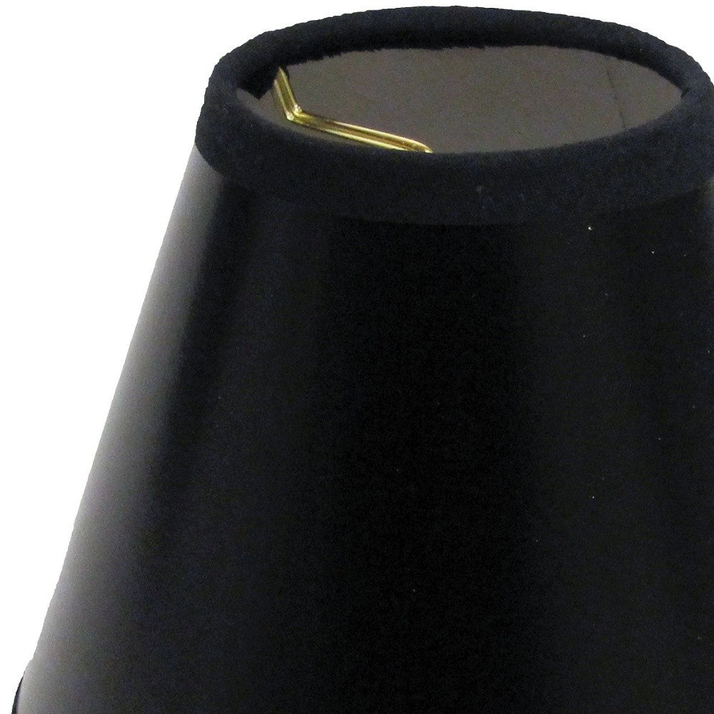 This Black with White Lining Set of 6 Chandelier Parchment Lampshades has a hint of mid-century modern flair and will be a great addition to your lamp base. This hardback Lampshades includes a standard flame clip that fits over a standard harp and can be used with your existing finial design. This high quality crafted drum shape has a slight slant to give it some visual interest and is crafted of the finest parchment with a fold on top and bottom of the shade. 4" x 4" x 4"