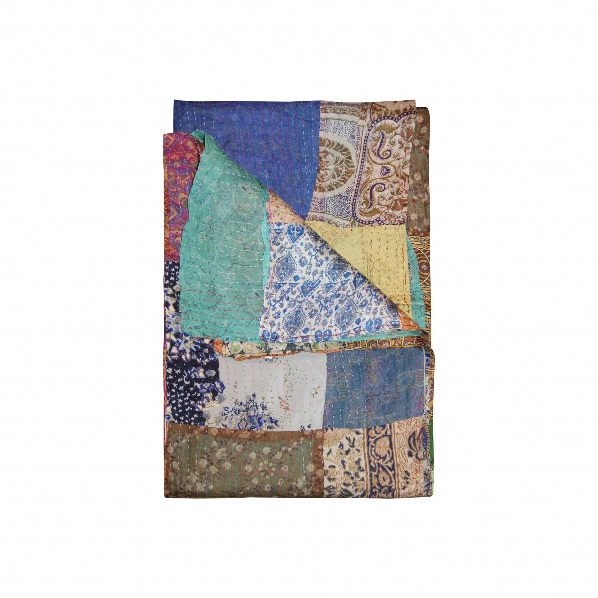 Fill your room with love, warmth and aesthetics with this charming throw. Appealing in colors and extravagant in textures, our throw is an output of the embroidery well-known to be an ancient creative art practiced by skillful Indian artisans. Made from many high-quality strands of silk or cotton, each unit is finished through a running stitch to create a unique pattern and look. This beautiful patchwork piece comes with a creative design that will add warmth and luxury to your room. - 100% cotton - Hand crafted - Technique: quilted - Can be used in a variety of ways: as a blanket, table cover, wall hanging, tapestry, beach cover and more - Hand wash cold water - Some variance in size and color may occur due to the one-of-a-kind vintage nature of this product - Made in series, individually packaged - Not from recycled material, new fabric - Enzyme washed - Unique, vintage, great hand feel.