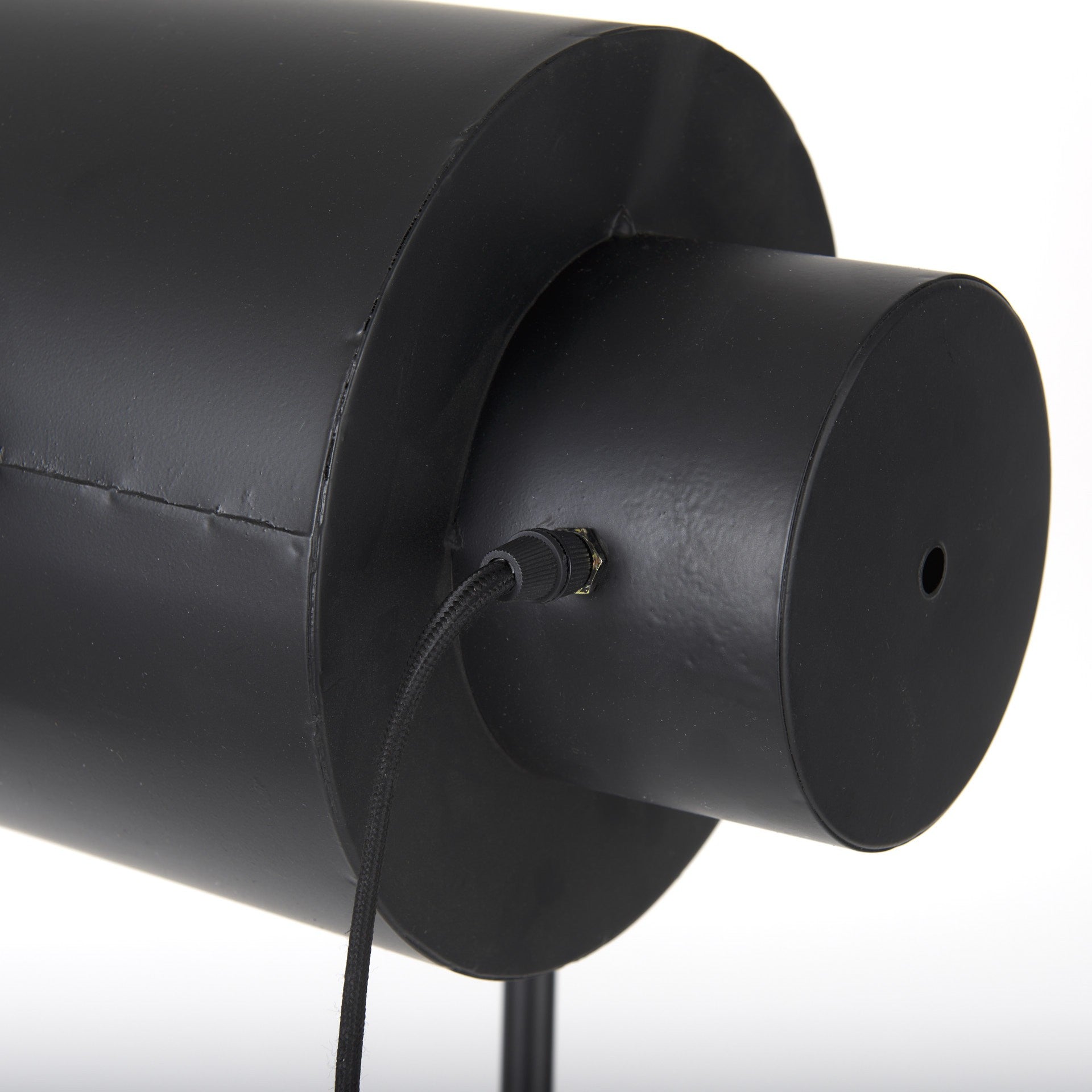 Add a touch of movie set glamour to your home with this Black Movie Set Floor Lamp. This piece is made from solid metal and is finished to a semi-matte black color. The three legs at the bottom serve as the base and have two metal rods attached at the end to create one leg. From this base, there is a solid metal rod that rises up and attaches to the bracket that hold the lamp shade in place. The lamp shade has a cylindrical shape and has a diffuser at the front. The light that this lamp throws is stunning and will elevate the look of any space in your home. 61" H x 22" W x 22" D