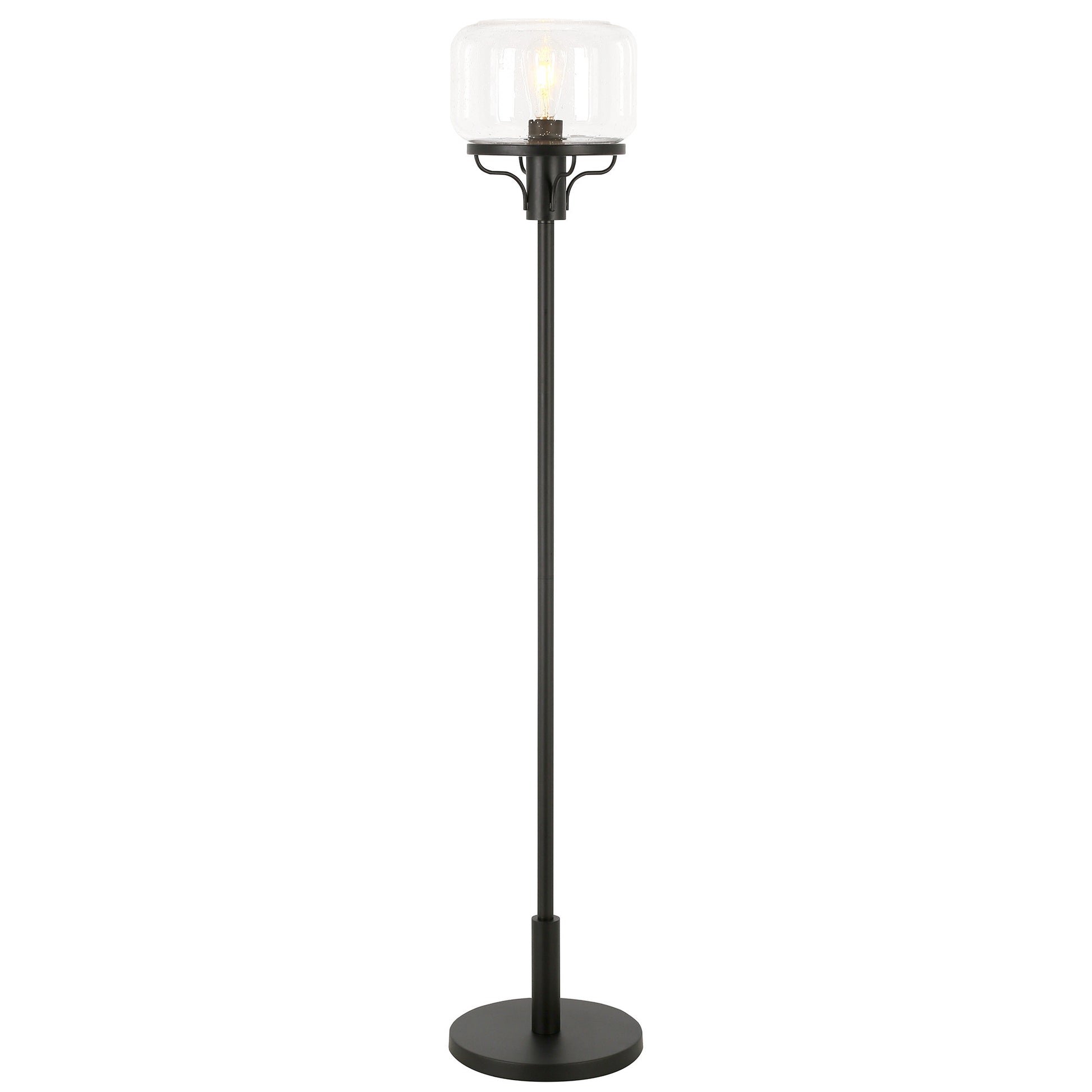Add a bright anchor to your room with this 62" black novelty floor lamp with clear seeded glass globe shade. The lamp is made of sturdy metal and features a black color. The lamp light itself is covered by a glass, globe shaped shade, making this a classy piece that will complement most any interior. Designed to be unique and visually pleasing while giving great light, this novelty lamp will bring some fun fashion and style to your space Use this lamp anywhere and elevate the look of the whole space. Bring some lite and good vibes into your space with this updated and stylishly designed lamp. 62" H x 12" W x 12" D