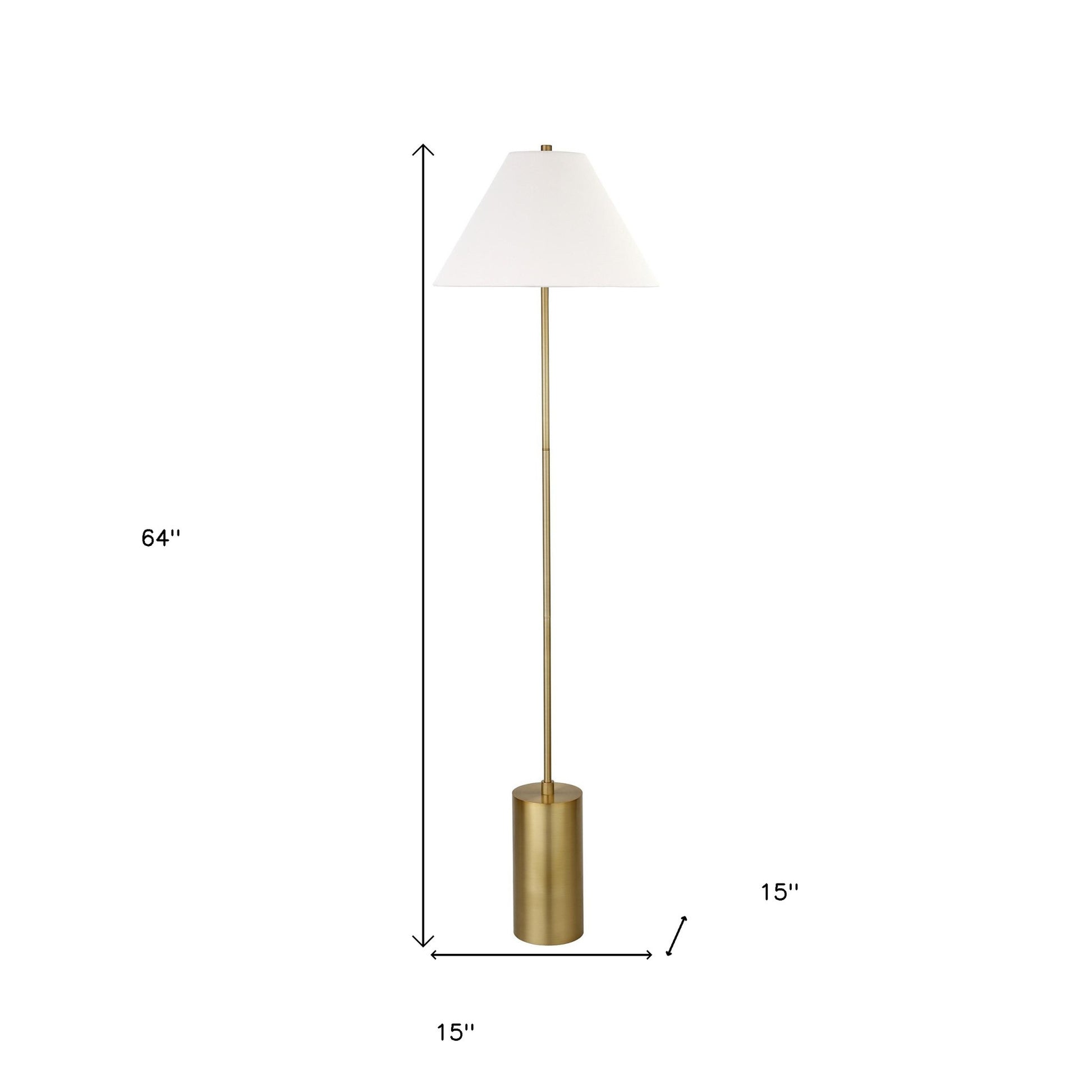 Truly a mix of design and functionality that doesn't compromise on style, this 64" brass traditional shaped floor lamp with white frosted glass empire shade will be a great addition to your space. The base of this lamp is made of brass metal. The brass base coloring infuses a warm and rich tone to your space. The lamp shade has a empire shape and is made from fabric. Classically styled, this traditional lamp features a straight pole that extends upwards from a single base. The light that this lamp throws is soft and warm to elevate the look of most any space in your home. The perfect lamp to create just the right natural and soothing light in your space. 64" H x 15" W x 15" D