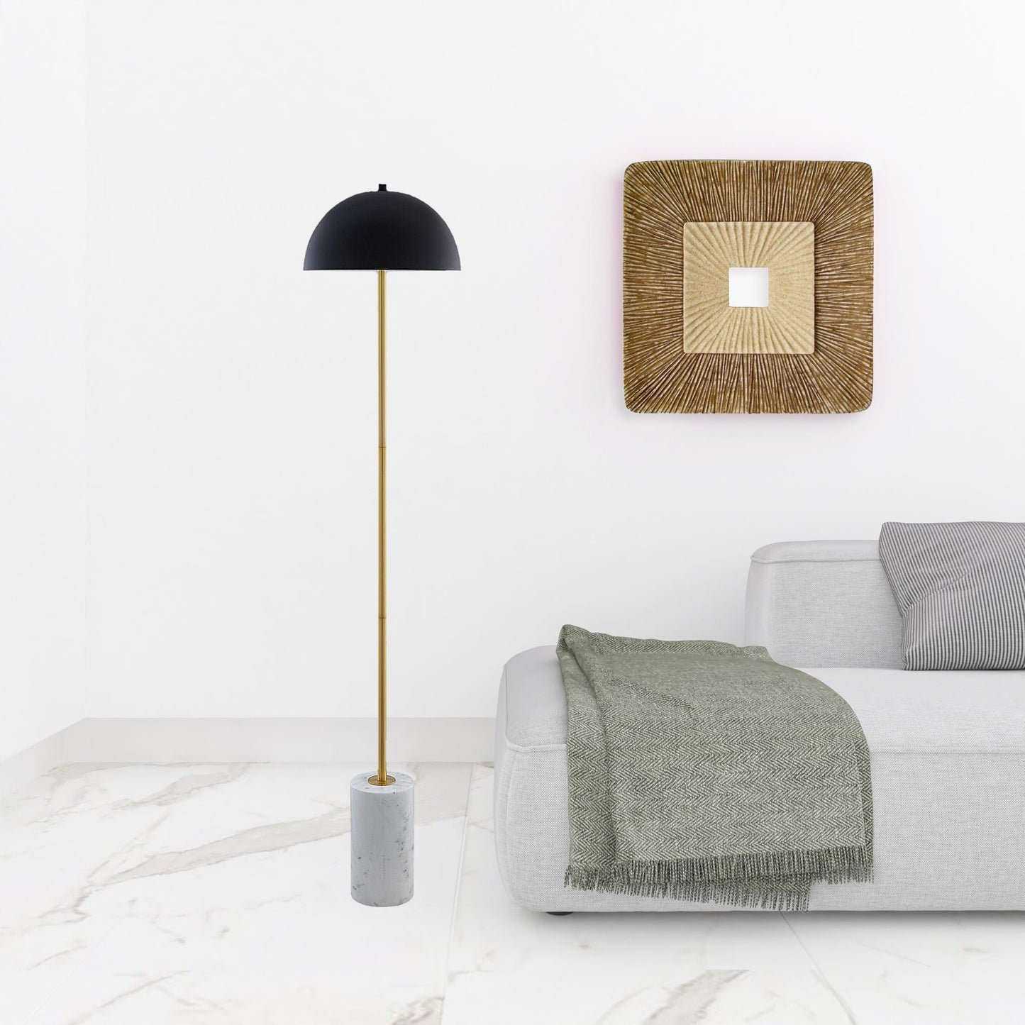 This 65-inch gold and white floor lamp with black dome shade is a great way to add some brightness to any corner of your home. The base of this lamp is made of metal finished in a gold and white tone. The lamp shade itself has a dome shape and is made of metal, which makes it a perfect choice. Classically styled, this traditional lamp features a straight pole that extends upwards from a single base. Use this lamp anywhere and elevate the look of the whole space. It is perfect for virtually any decor. 65-inch H x 13.75-inch W x 13.75-inch D