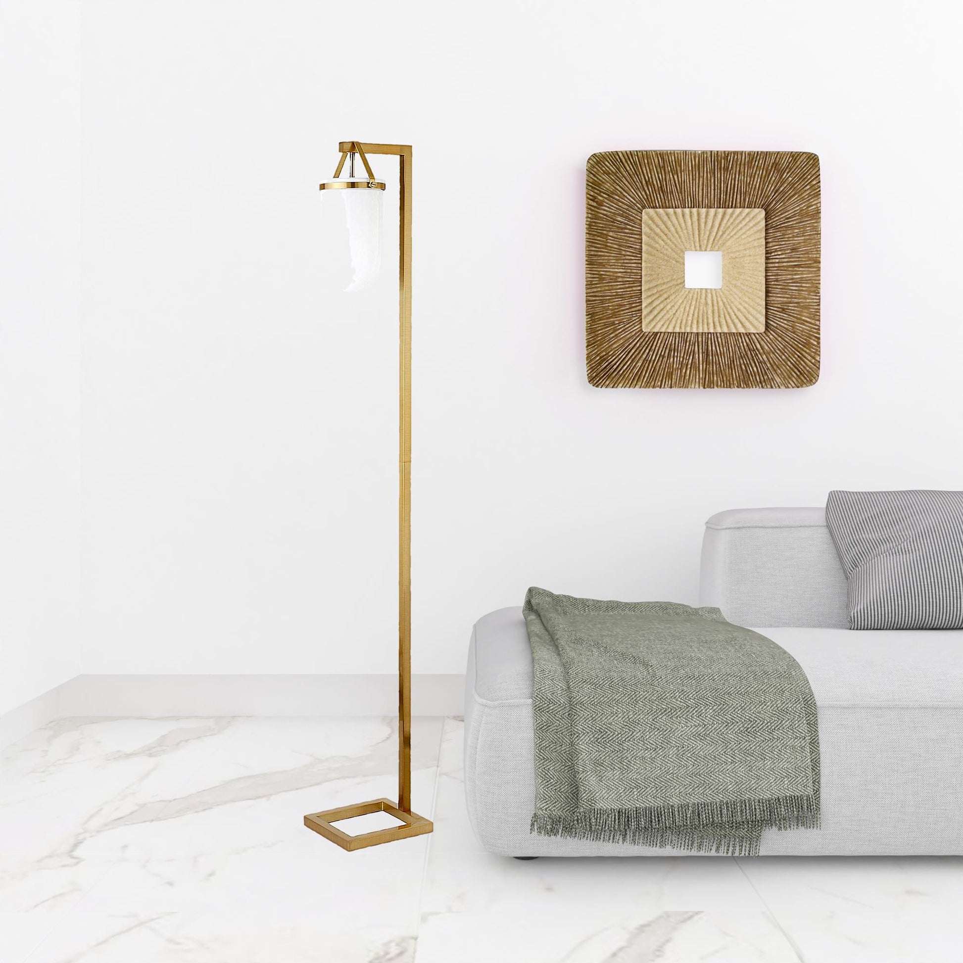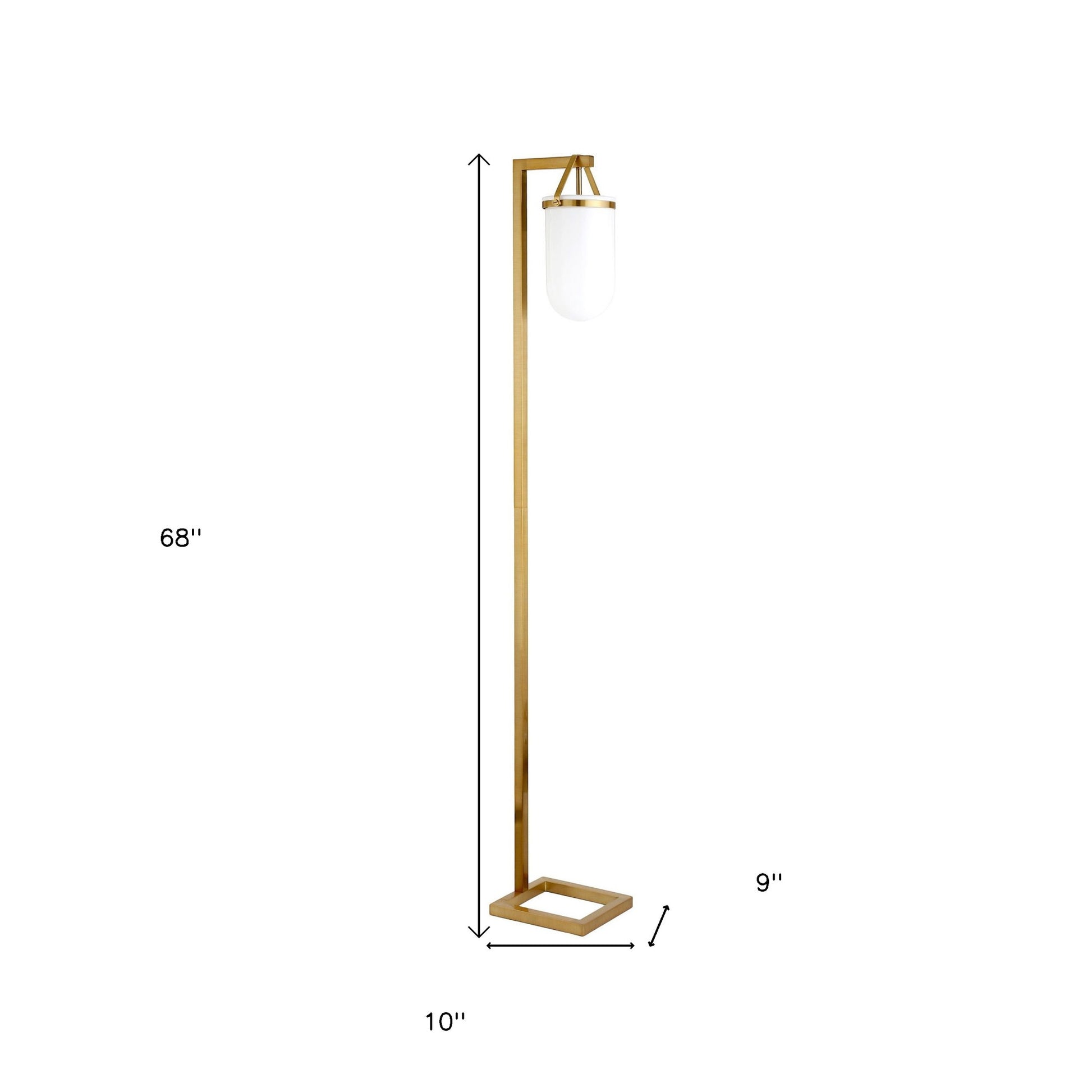 Truly a mix of design and functionality that doesn't compromise on style, this 68" brass arched floor lamp with white no pattern frosted glass dome shade will be a great addition to your space. The base of this lamp is made of brass metal. The brass base coloring infuses a warm and rich tone to your space. The brass of this lamp creates a nice contrast with the white glass dome shaped shade. A great way to shed light over those hard to reach areas, this arched floor lamp has a single base with straight pole that extends upwards and a long curving arm. Use this lamp anywhere and elevate the look of the whole space. It is perfect for virtually any decor. 68" H x 10" W x 9" D