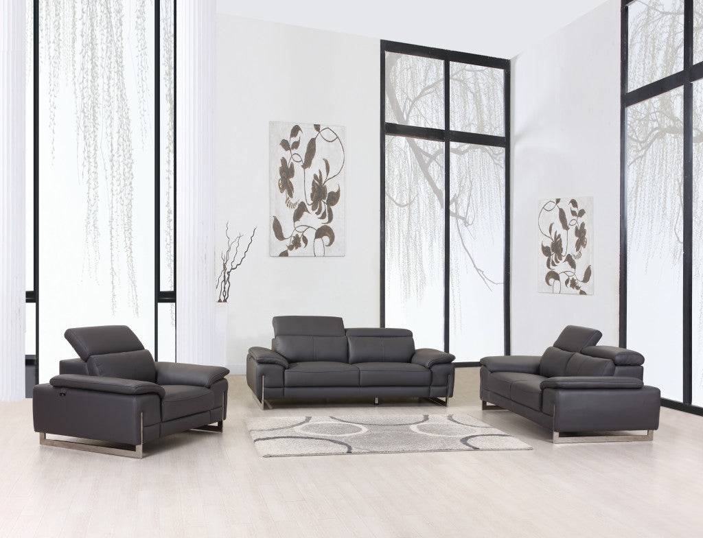 93" Tasteful Dark Grey Leather Sofa Set