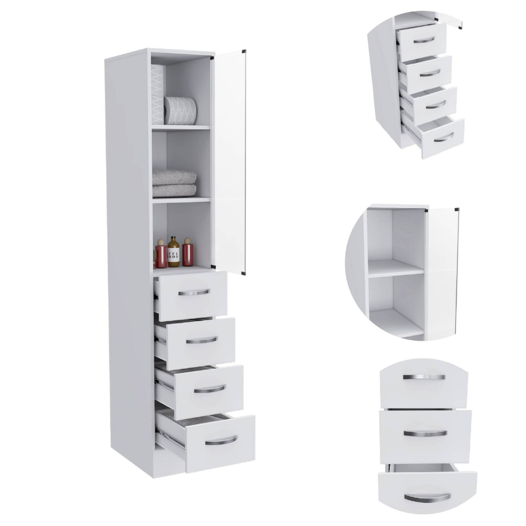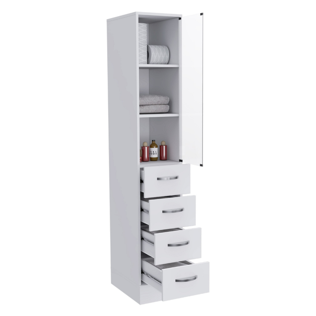 Linen Cabinet Artic, Three Shelves, Single Door, White Finish